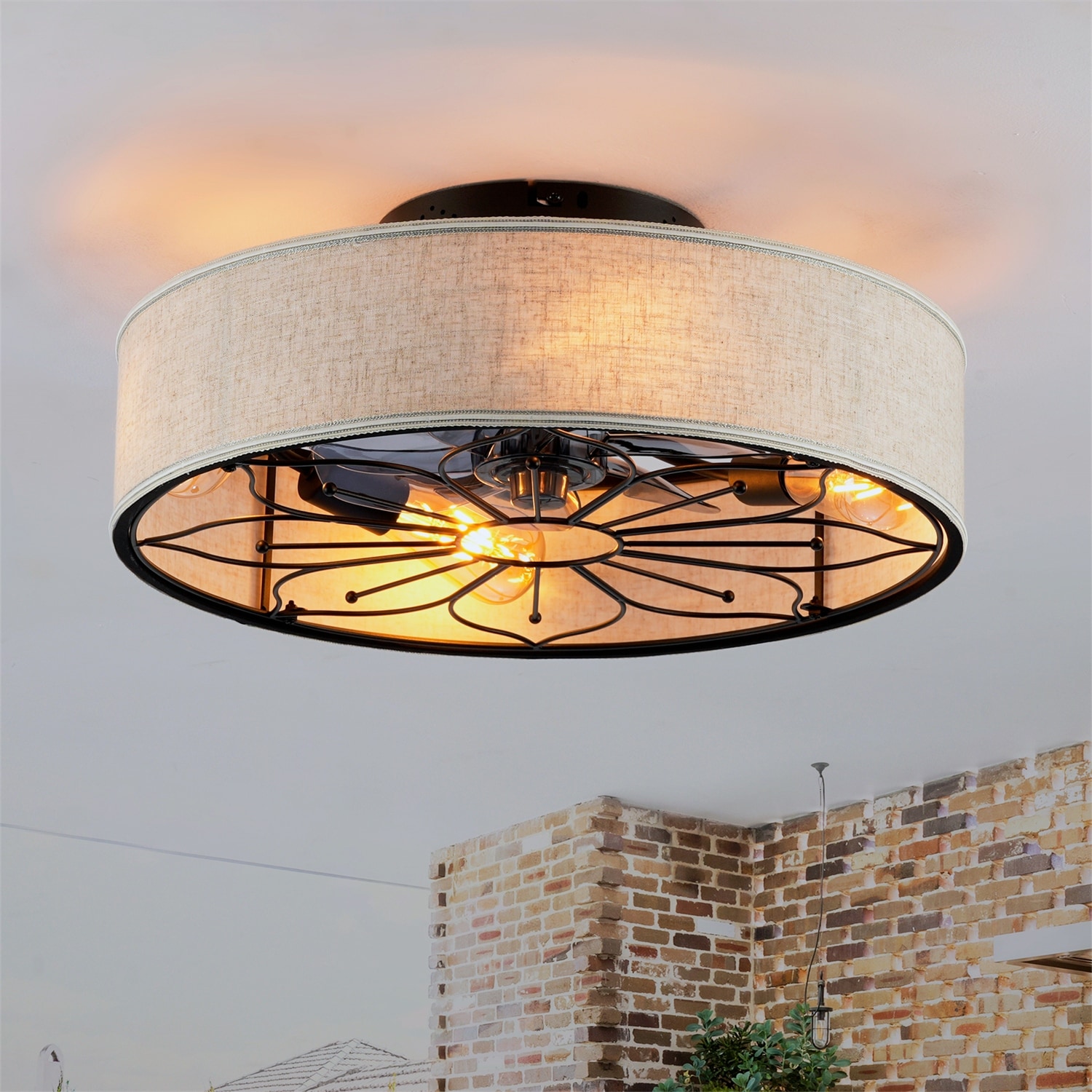 20" Lotus Fabric Farmhouse Bladeless Ceiling Fan w/ Remote Contro, NOT Included Bulbs