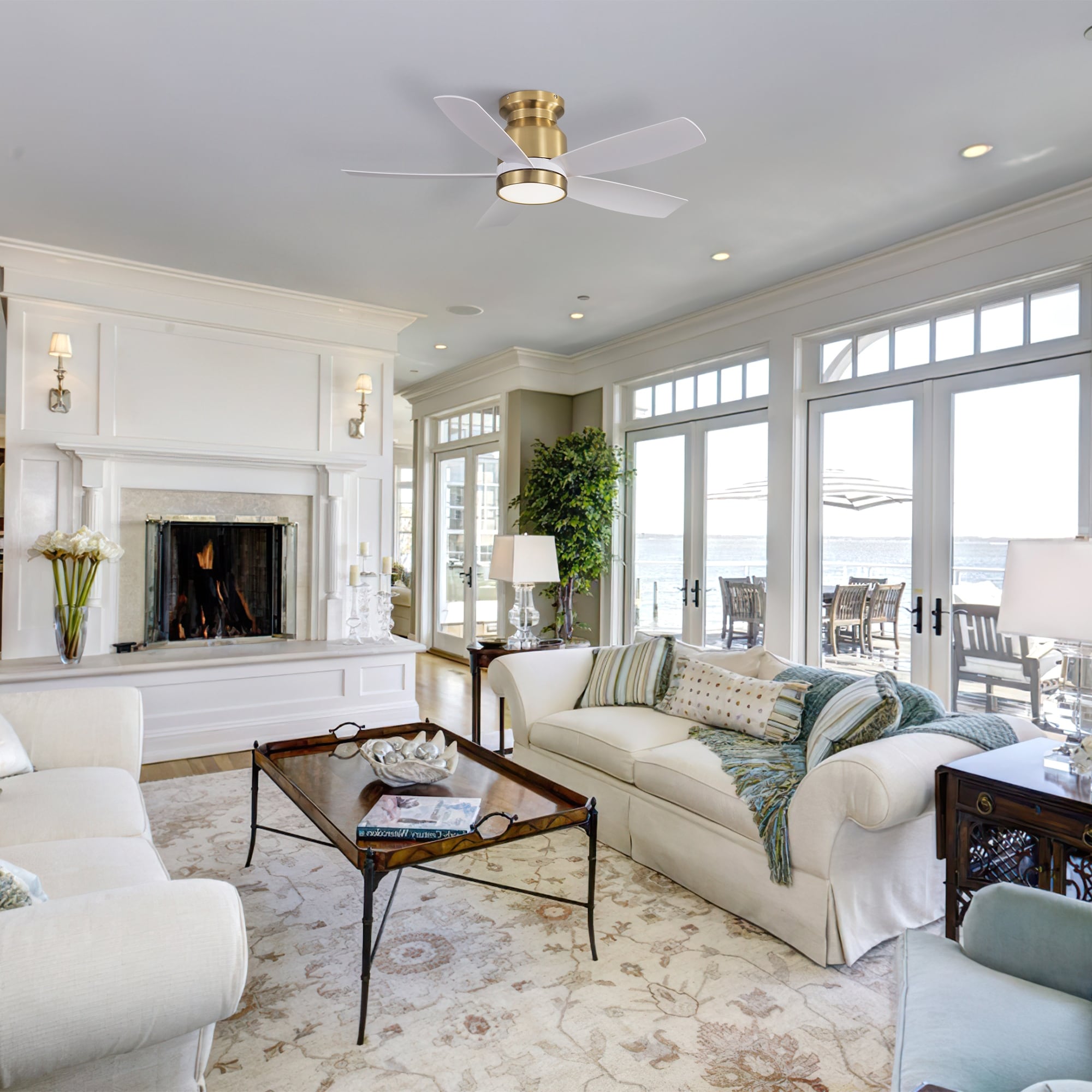 52 Inch Farmhouse Style Flush Mount Ceiling Fan with Light and Remote Control, Reversible DC Motor