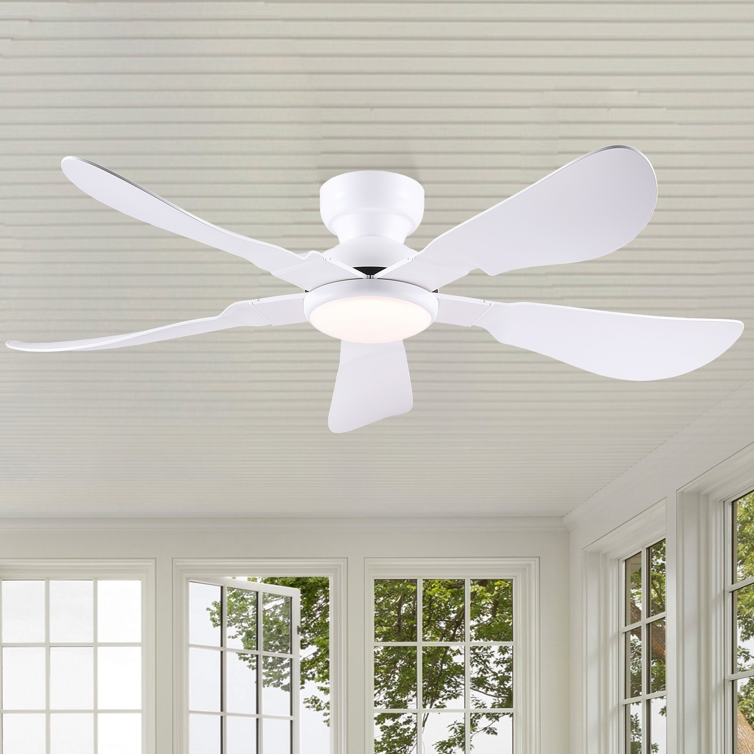 Moasis 52" Flush Mount 5 Blades Ceiling Fans with Light and Remote Control
