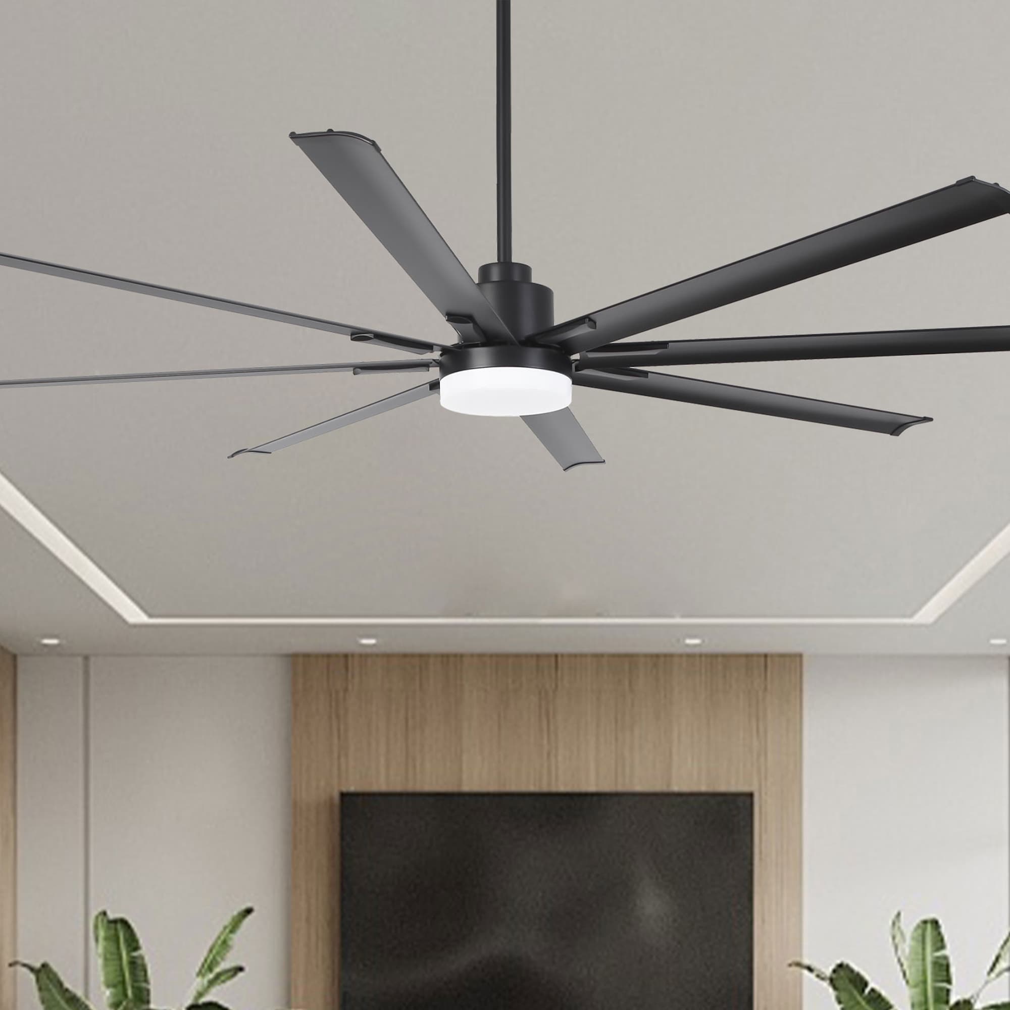 Vaczon 84" Industrial Black Aluminum Large Ceiling Fan with Light and Remote Control