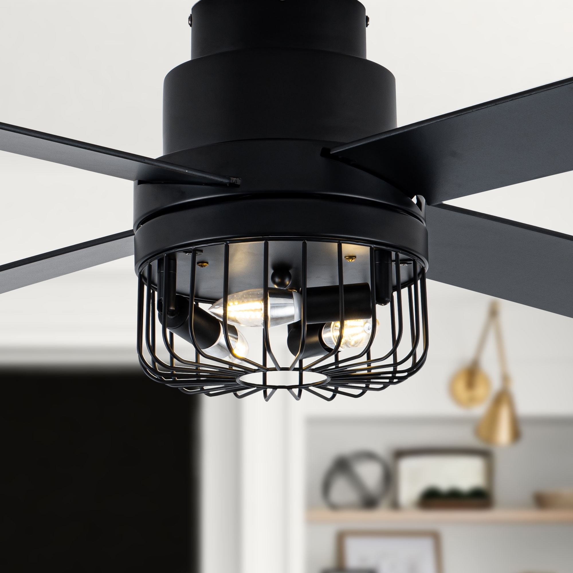 19.6" Farmhouse ceiling fan light and remote, Industrial Caged Ceiling Fan Light, Retro Ceiling Fan Lights with 7 Blades