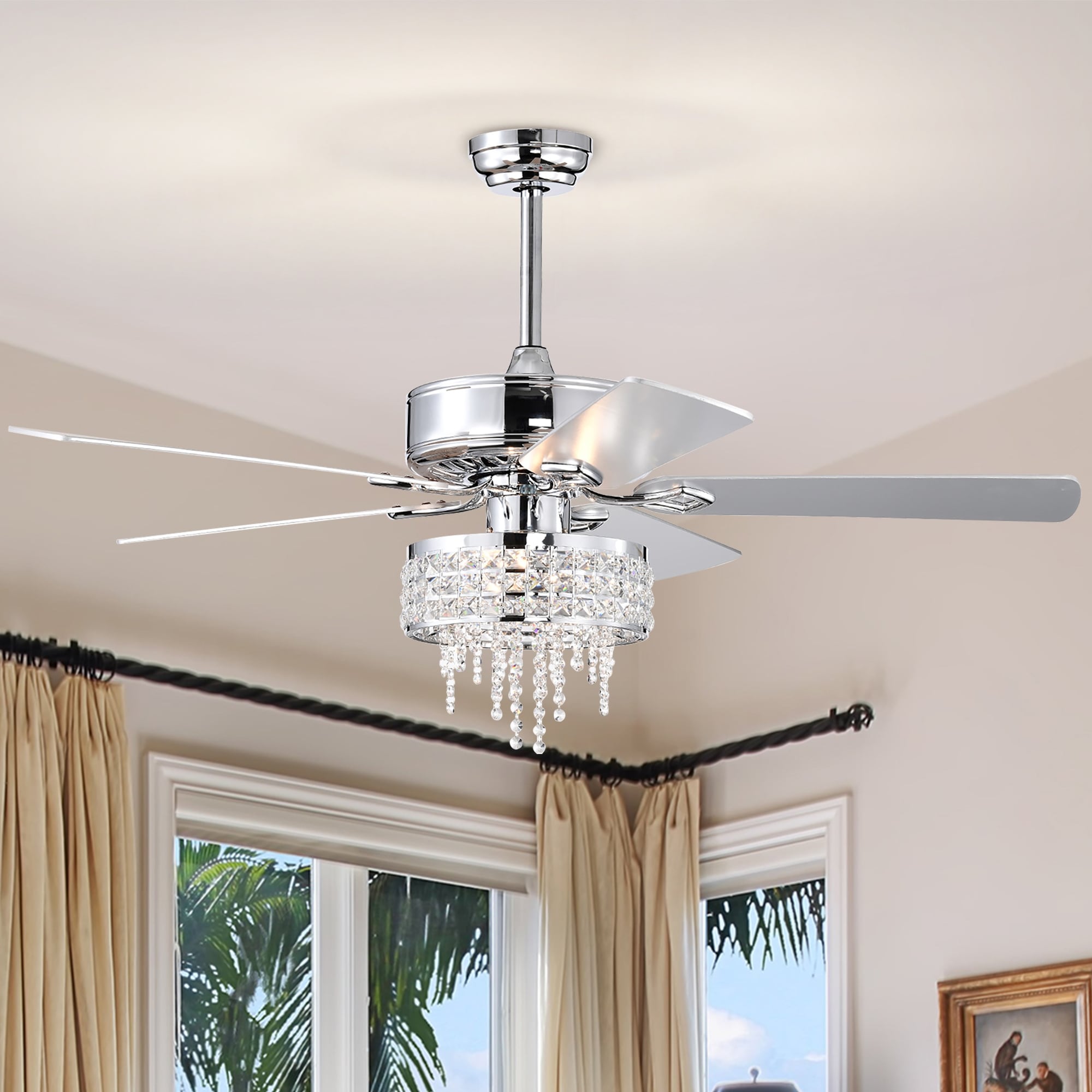 52in. Black 6-speed Reversible Crystal Ceiling Fan with Light and Remote - 52
