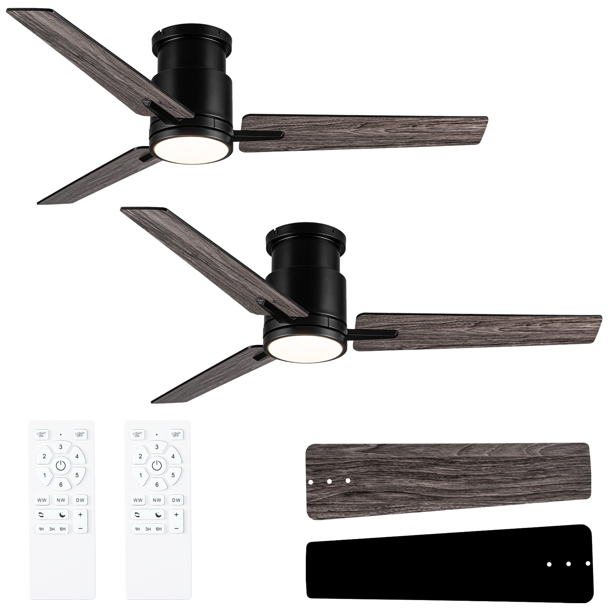 YUHAO Kaleido 48 in. 2-Pack Indoor Matte Black Ceiling Fans with 3-Colors Integrated LED and Dual-Finish Blades