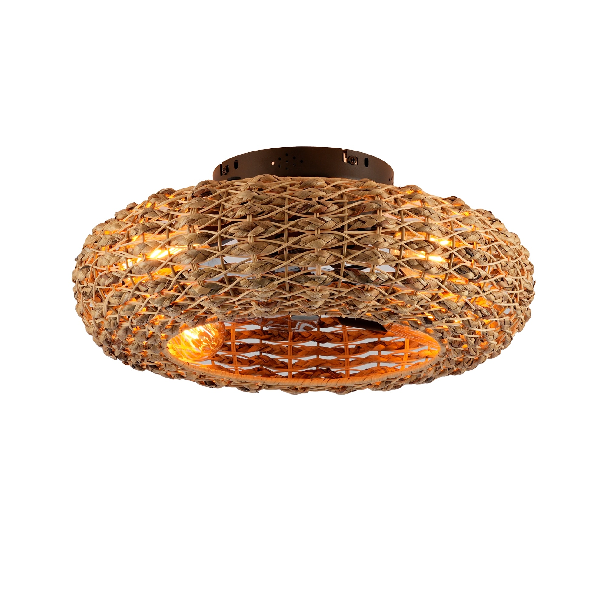 19.6" Bamboo Ceiling Fan With Remote Control ,6 Speed, DC Motor Reversible Ceiling Fan For Living Room