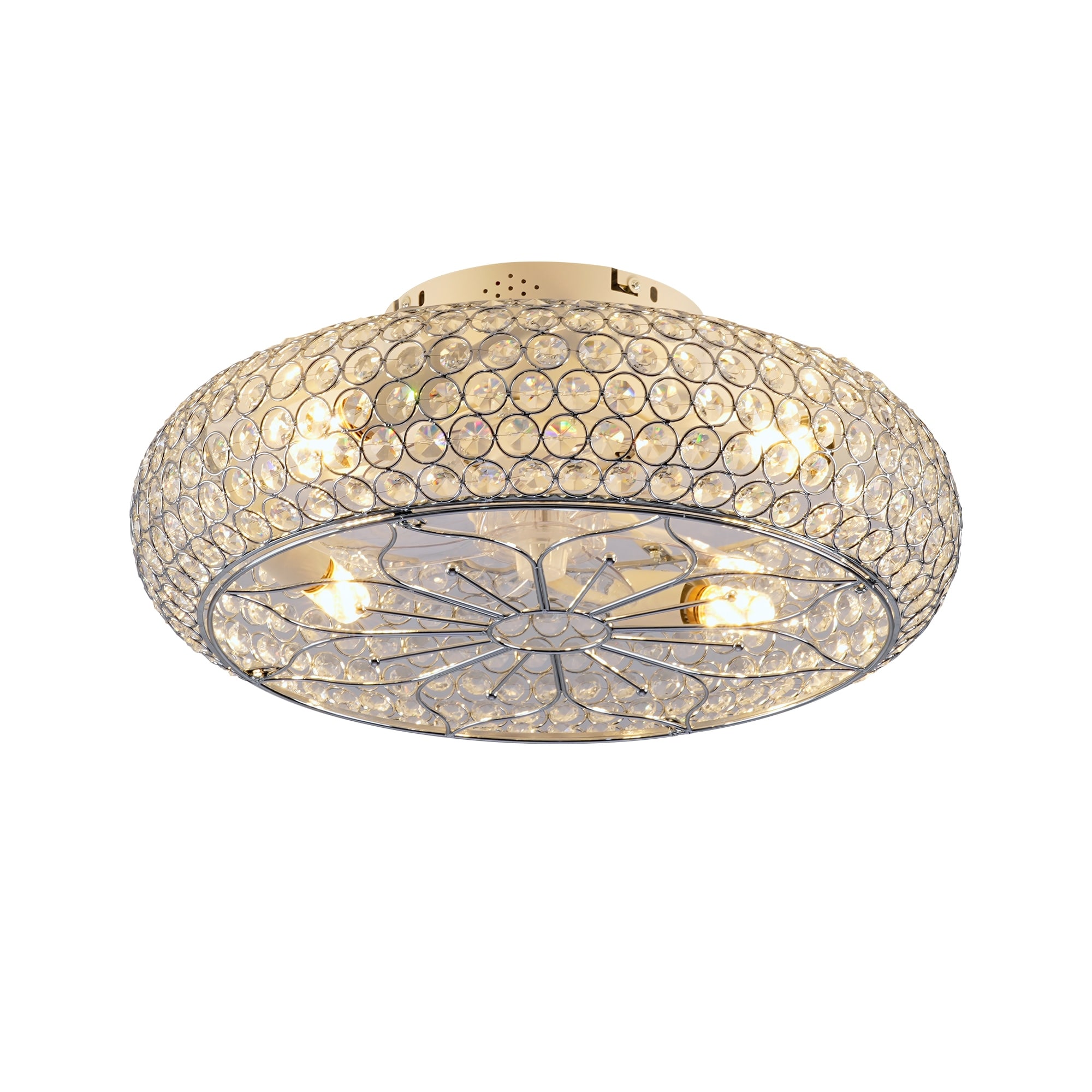 Crystal Ceiling Fans with Light,Flush Mount 6 Speed Ceiling Fan Light