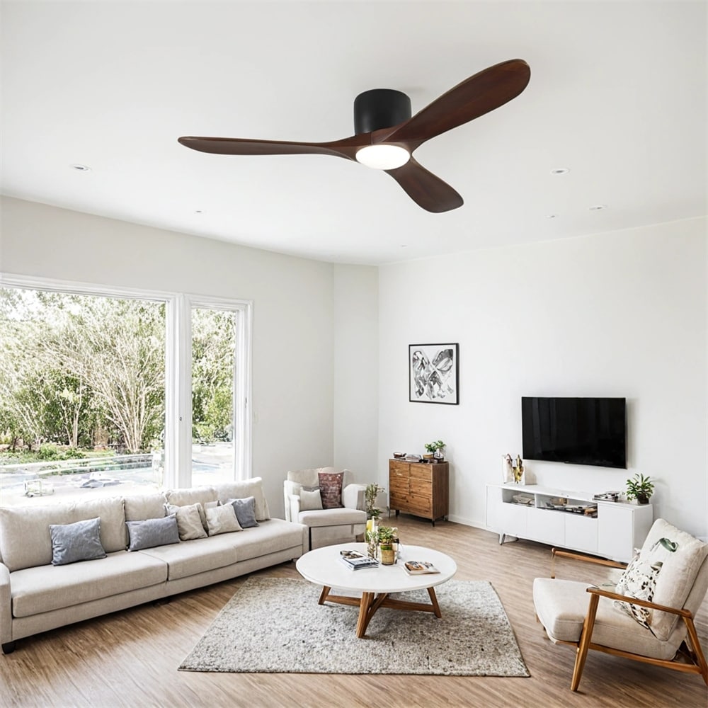 52-inch Ceiling Fan w/Light,3 Dark Walnut Wood Blades,Remote Control