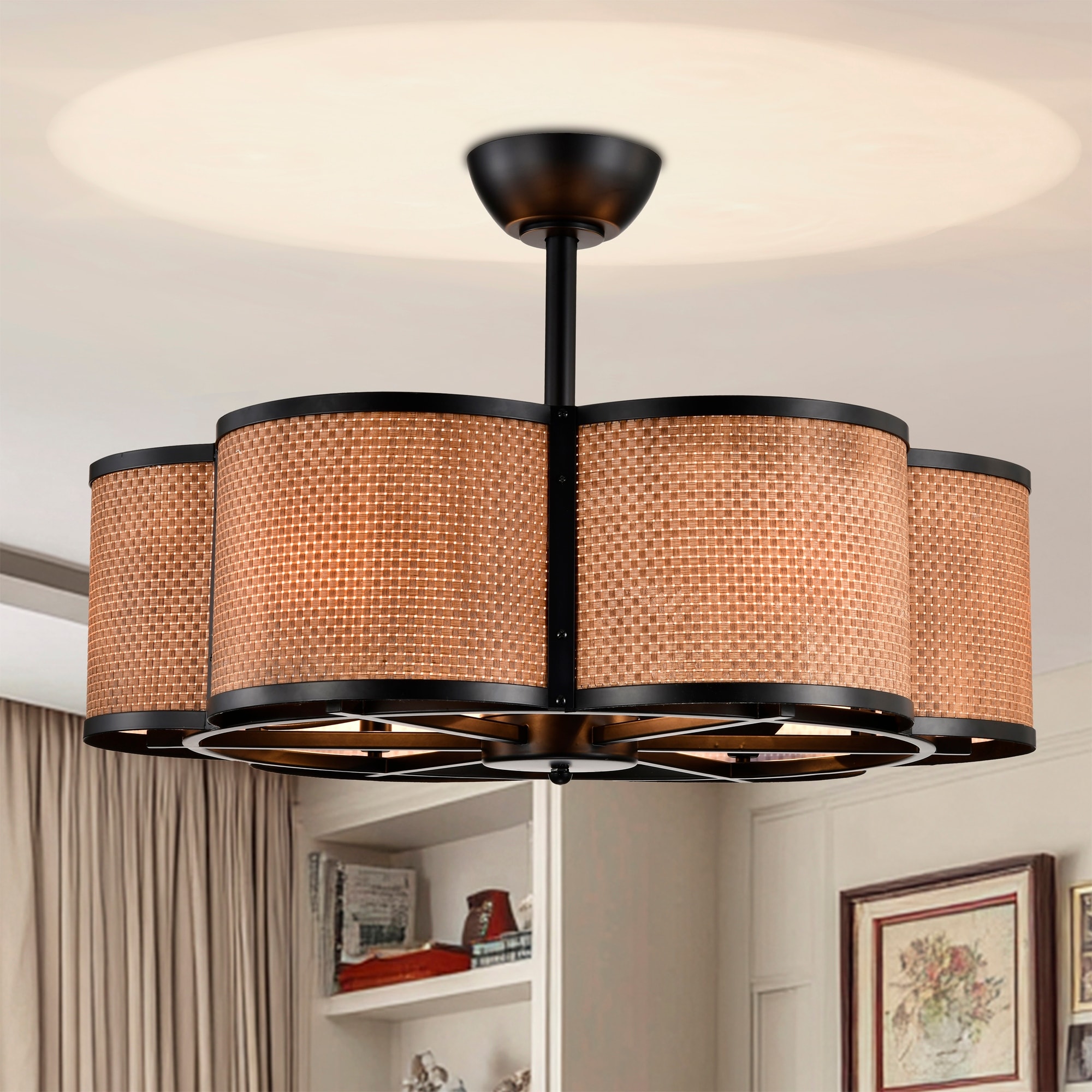 Bremen Basket Weave and Metal Frame Lighted Ceiling Fan Fandelier - Brown