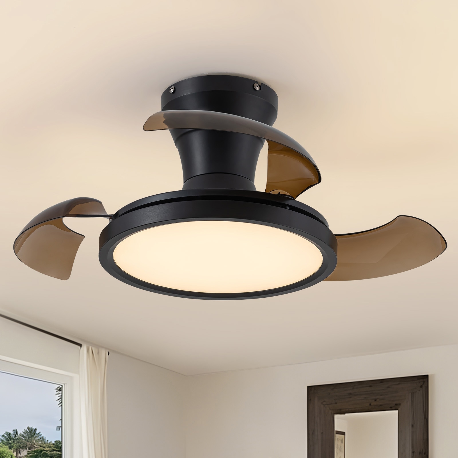 LunaDrift 16"20"24" Modern Black Crystal Smart Flush Mount Ceiling Fan with Light, Dimmable Bedroom Ceiling Fan w/Remote