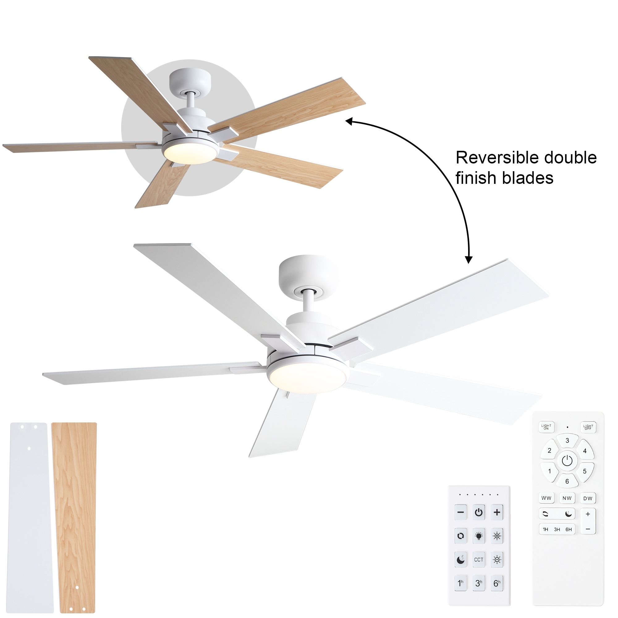 42 Inch Indoor Ceiling Fan With Dimmable LED Light 5 Solid Wood Blades Remote Control Reversible DC Motor