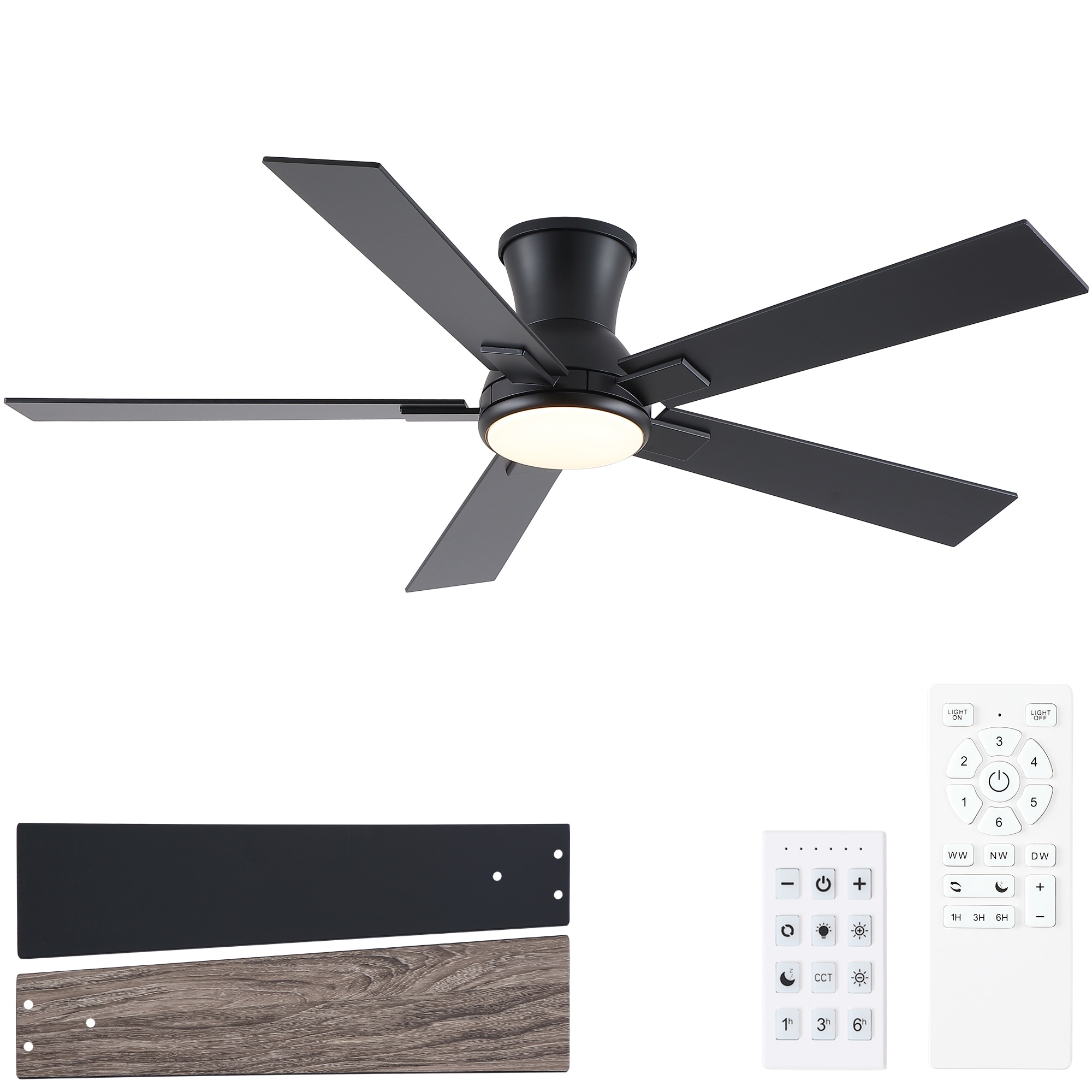 52 Inch Flush Mount Ceiling Fan 3 Solid Wood Fan Blade Noiseless Reversible DC Motor Smart Remote Control For Living Room