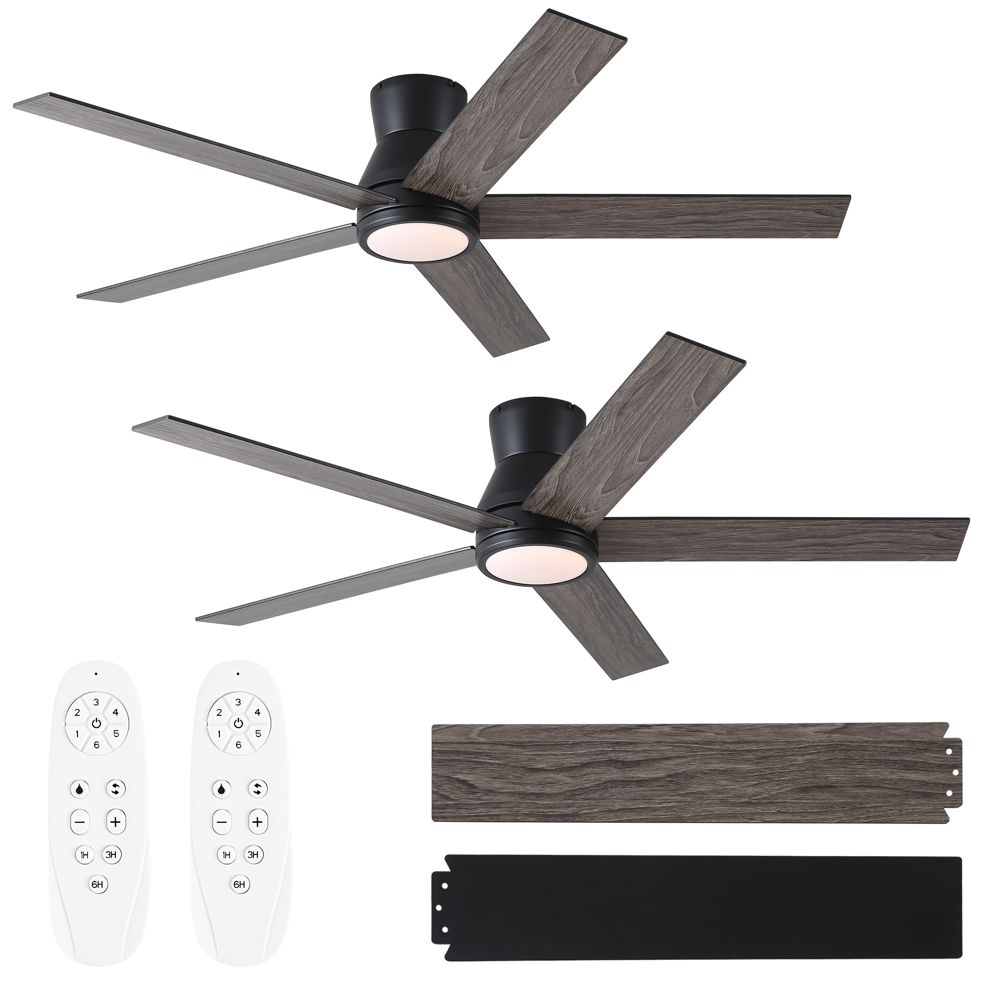YUHAO Hushine 2-pack 52 in. Indoor Black Flush Mount LED Ceiling Fan with Light, Remote Included and Reversible Blades