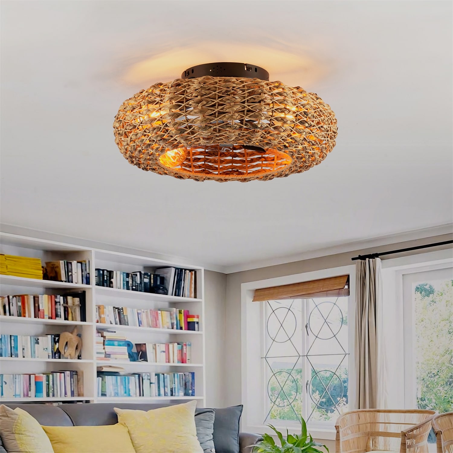 19.6" Bamboo Ceiling Fan with Remote Control and 6 Speed, NOT Included Bulbs