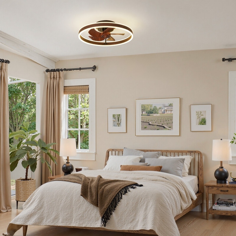 20" Modern Fabric Ceiling Fan with Lights 6-Speed Flush Mount Modern Ceiling Fan - 4-Light