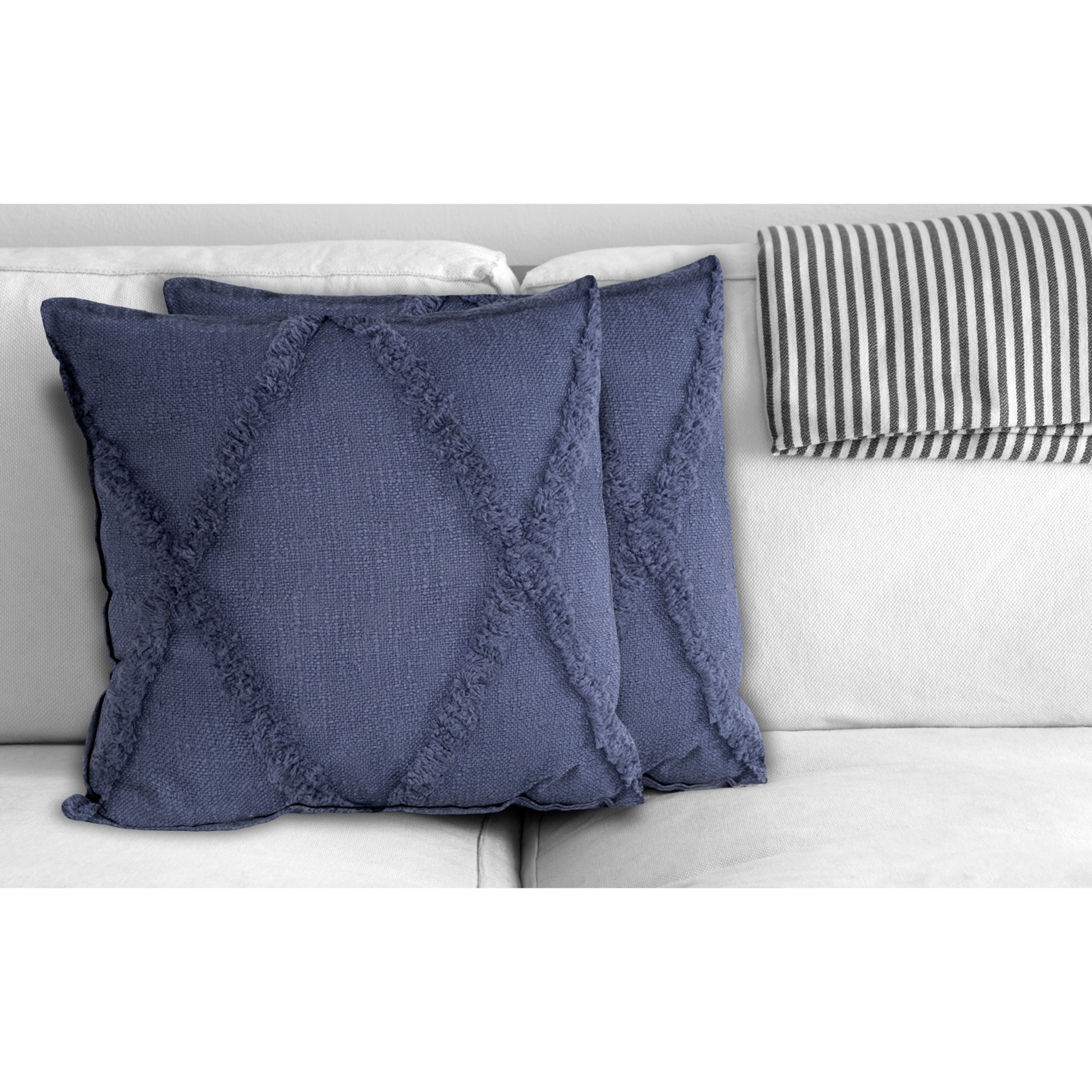 Handwoven Diamond Shag Square Throw Pillow Covers - 18" - Denim Blue - Set of 2