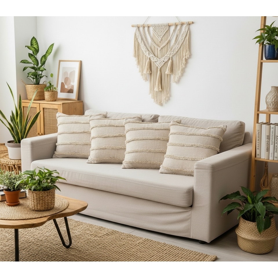 Power-Loomed Striped Shag Square Throw Pillow Covers - 20" - Beige - Set of 4