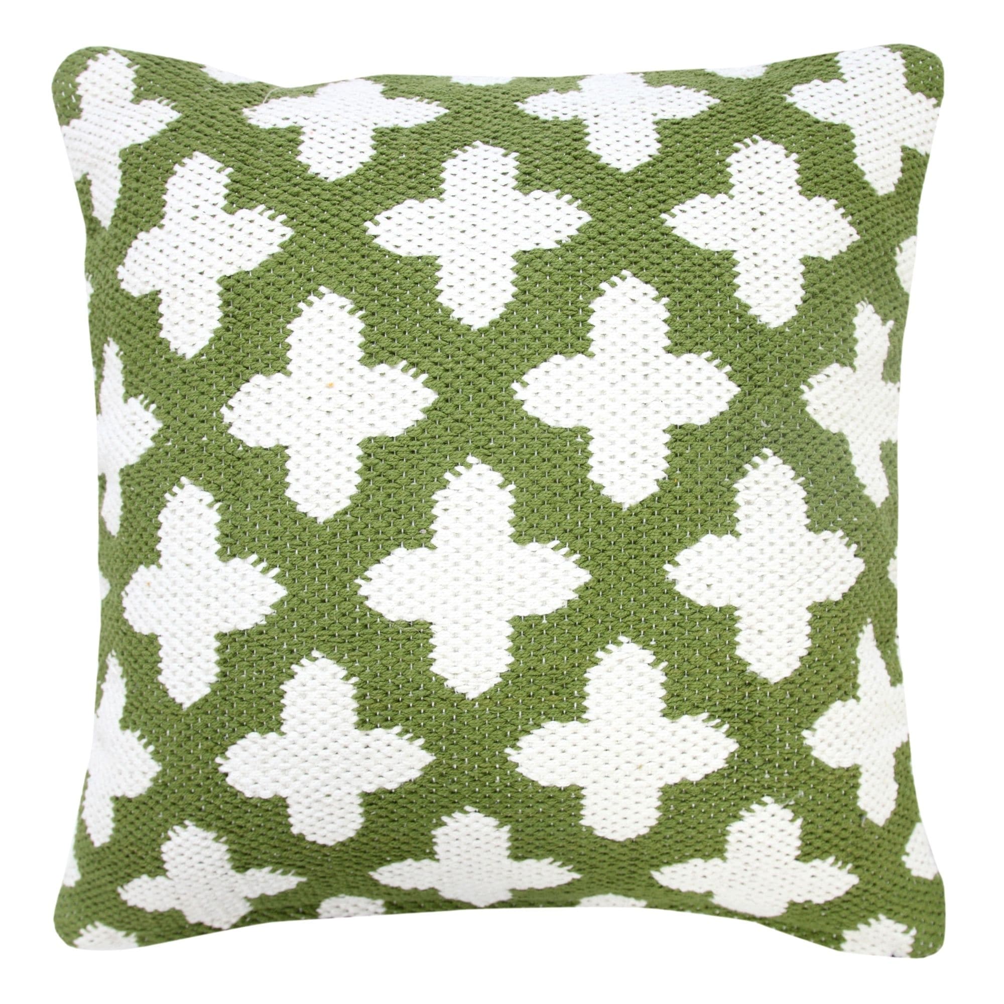 20" Green and White Swiss Cross Geometric Square Throw Pillow