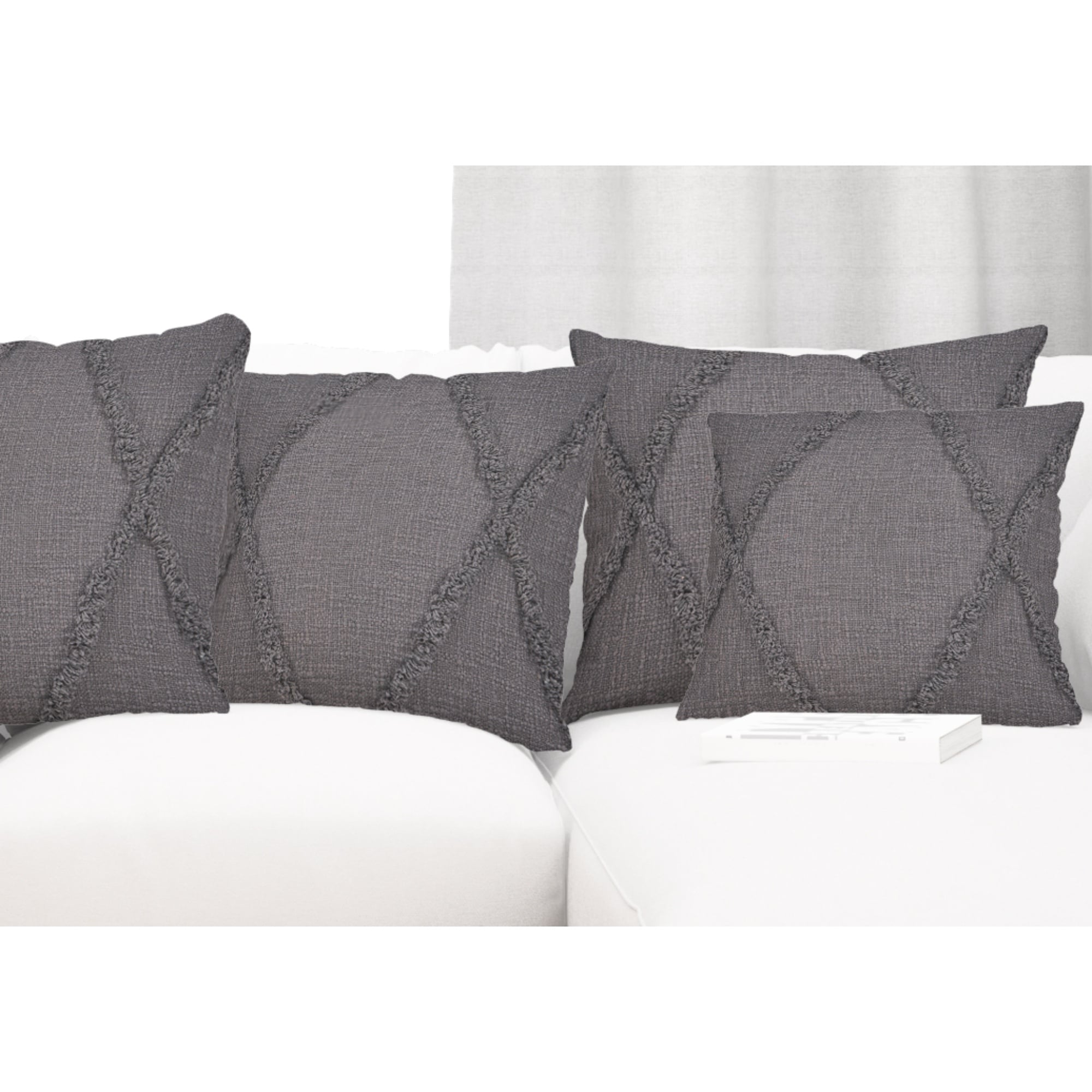 Handwoven Diamond Shag Square Throw Pillow Covers - 20" - Gray - Set of 4