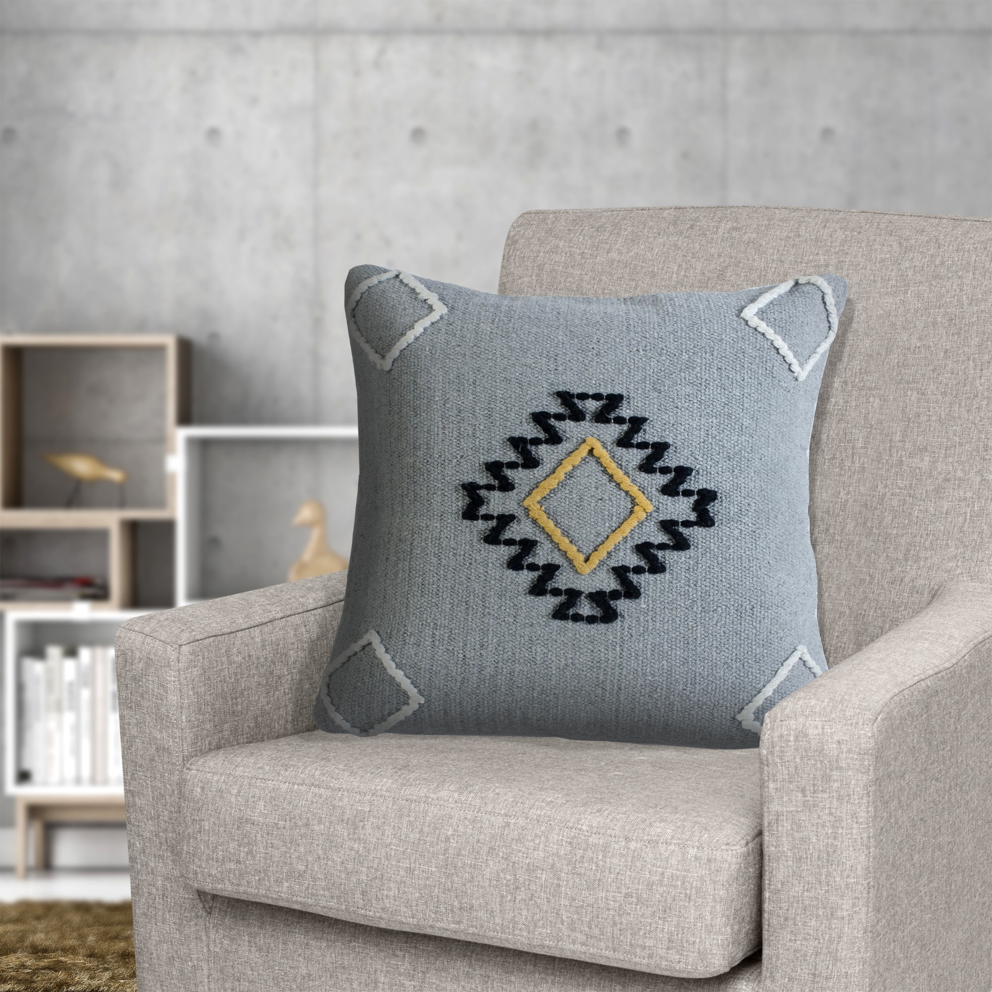 Handwoven Diamond Cotton Throw Pillow Cover - 20" - Gray and Yellow