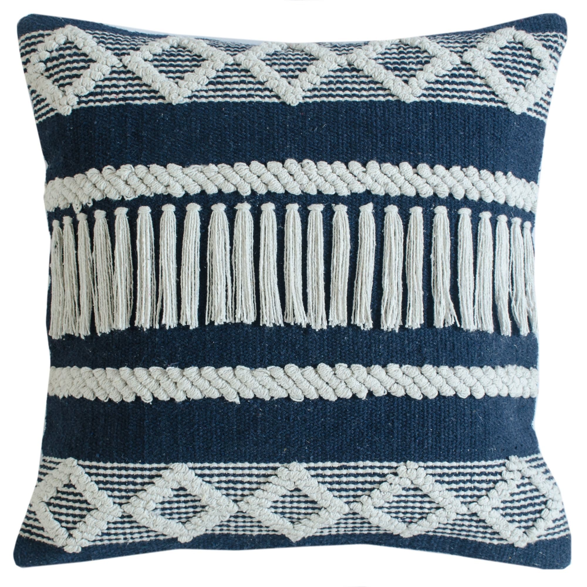 20" Blue and Ivory Diamond Stripe Textured Square Throw Pillow