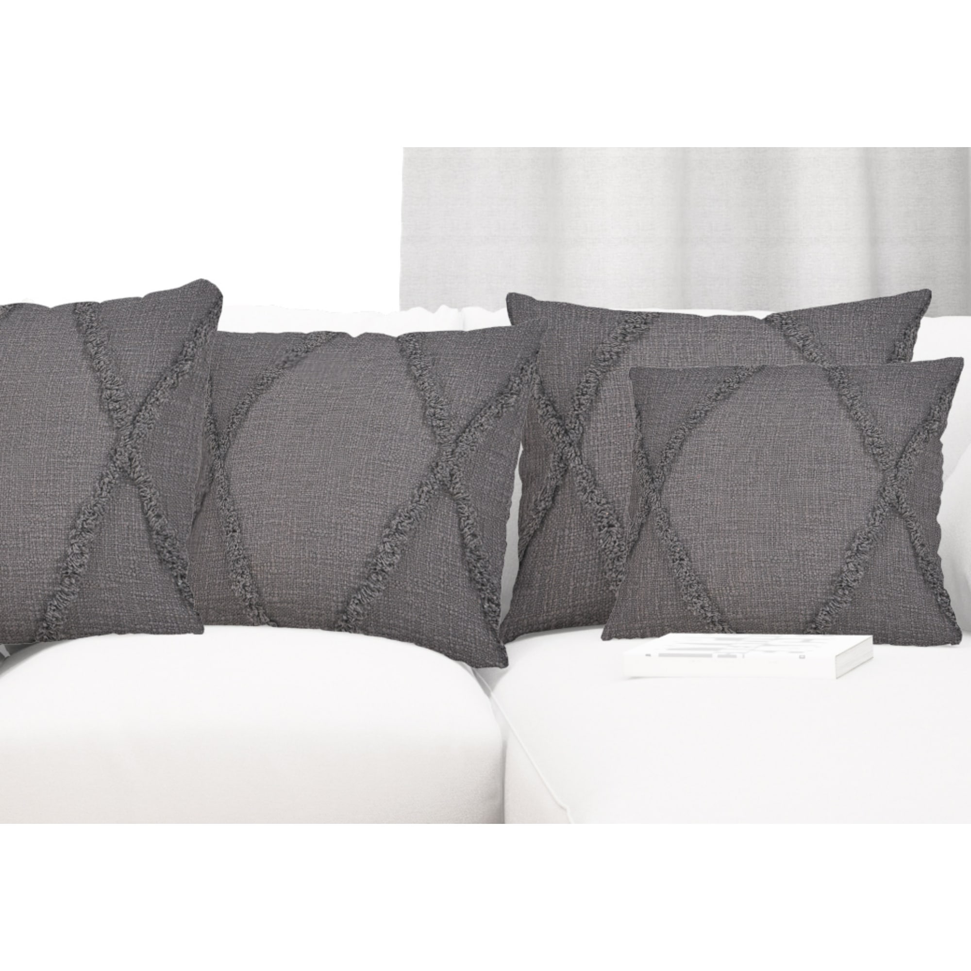 Hand-Tufted Diamond Square Throw Pillows - 20" - Gray - Set of 4