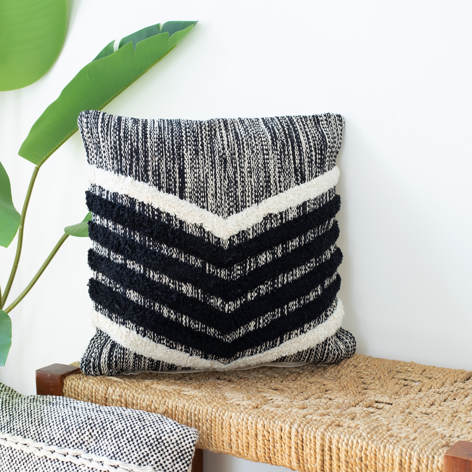 Handwoven Chevron Cotton Throw Pillow Cover - 18" - Black and Cream