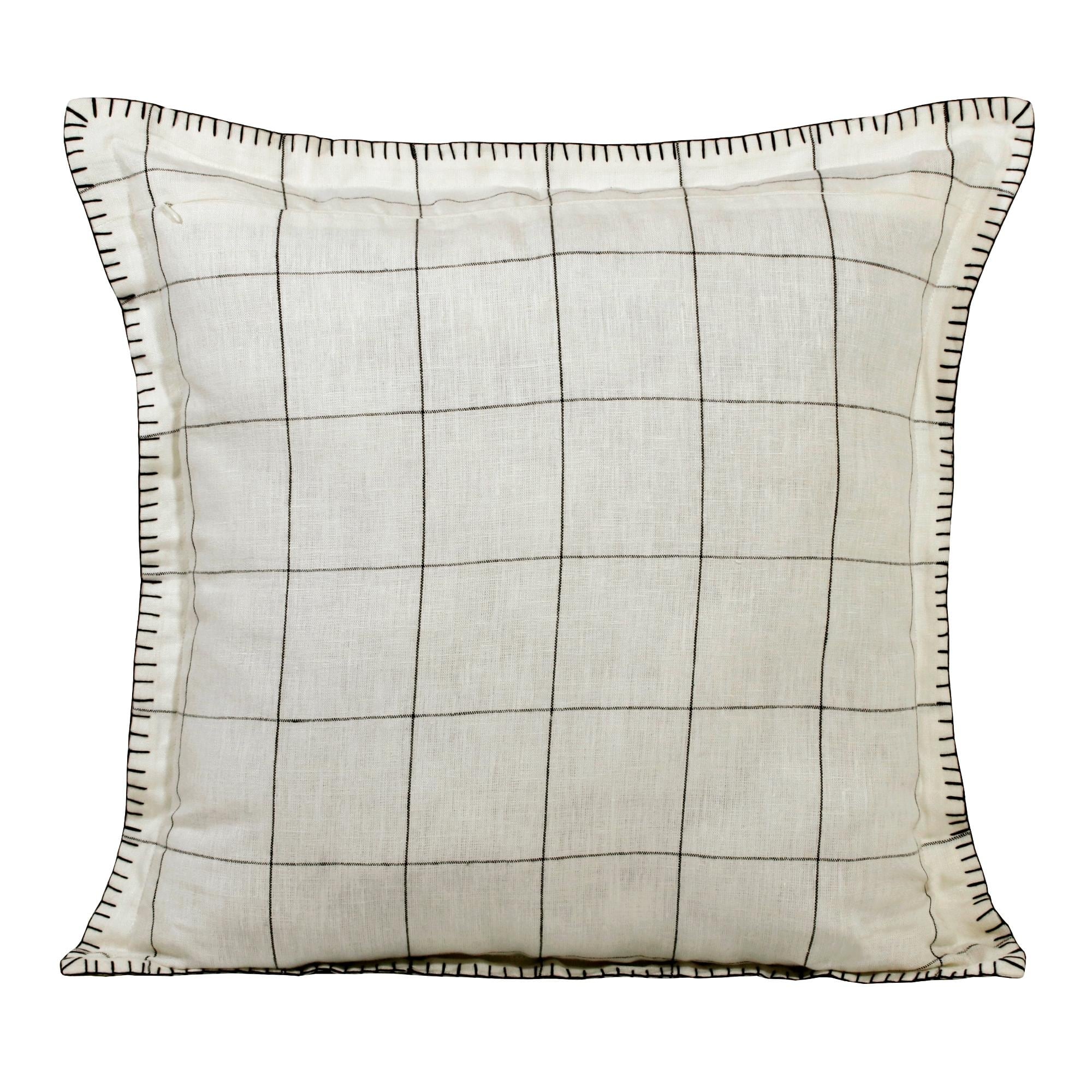 Handwoven Farmhouse Checkered Square Throw Pillow - 20" - Ivory and Black