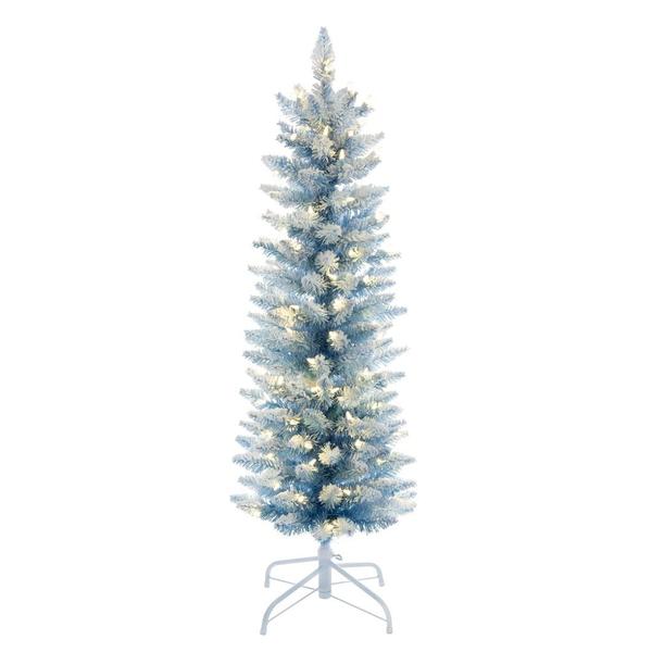Vickerman 796771 - 9' x 32" Flocked Baby Blue Pencil Fir 400 LED Light Prelit Christmas Tree Christmas Tree (K255581LED)