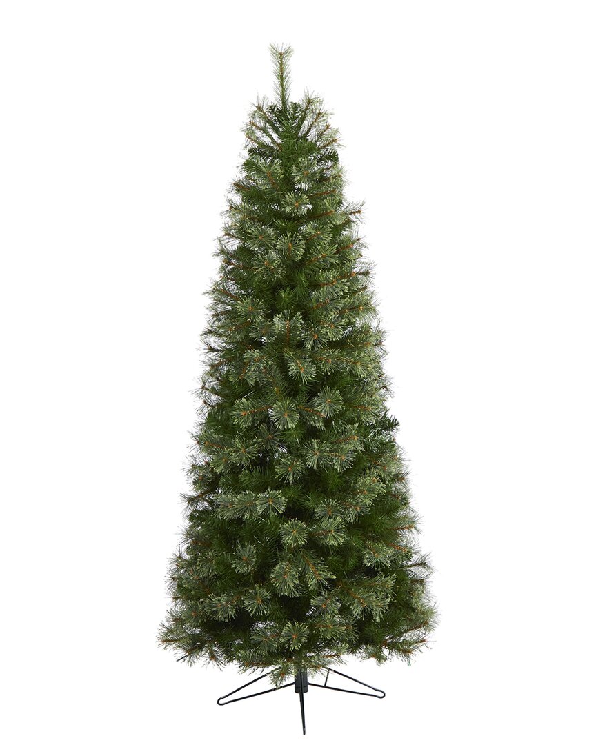 Nearly Natural 8Ft Slim Green Mountain Pine Artificial Christmas Tree With 1348 Bendable Branches
