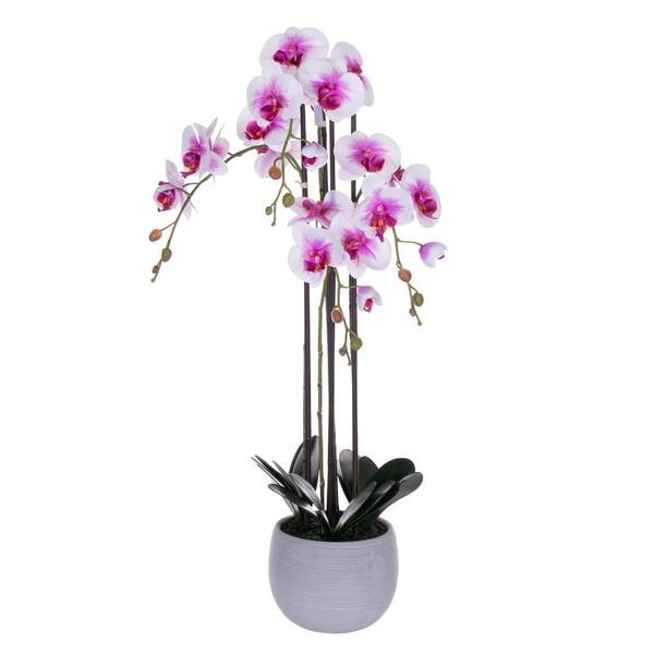 Vickerman 804681 - 39" Purple White RT Orchid Stem in Pot (FC253901) Home Office Flowers in Pots Vases and Bowls