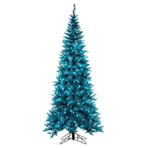 Vickerman 728543 - 4.5' x 34" Slim Aqua Tinsel 250 Dura-Lit Aqua LED Mini Lights 525 Tips Christmas Tree Christmas Tree (K234146LED)