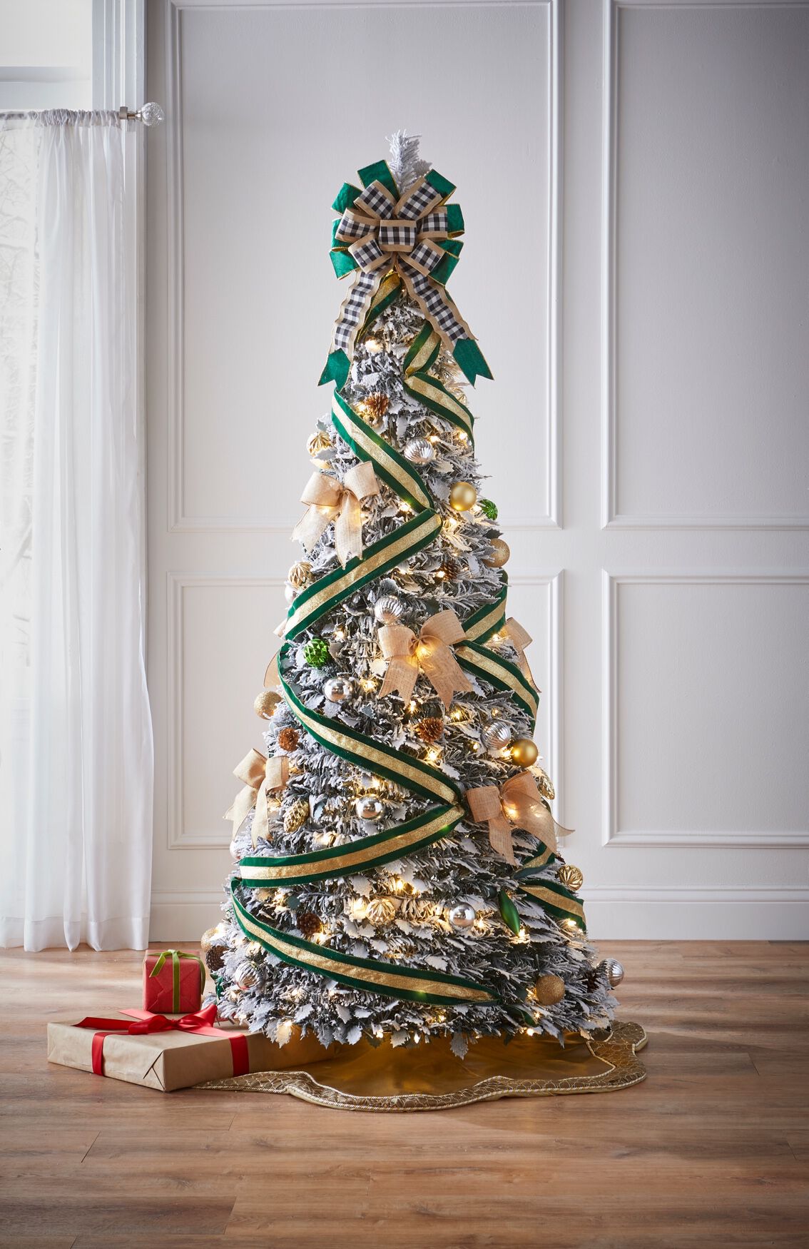7H Pre-Lit Flocked Pop-Up Tree by BrylaneHome in Red Gold