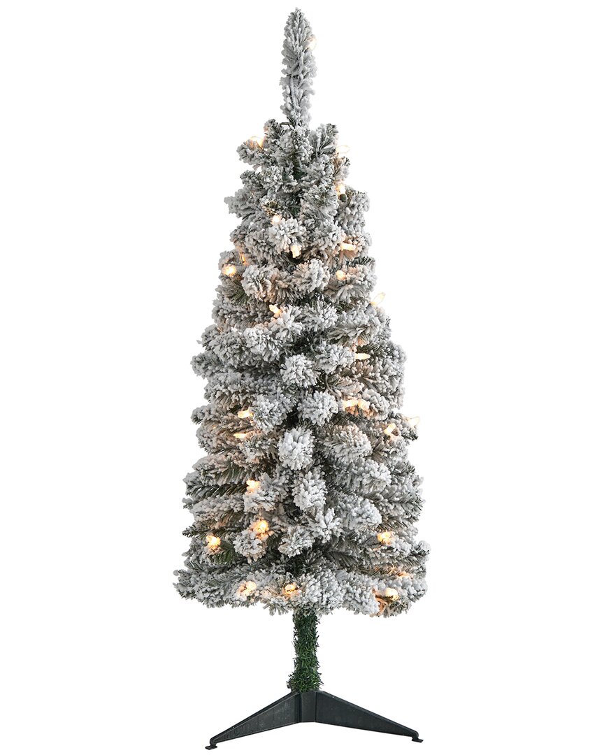 Nearly Natural 4Ft Winter Flocked Pre-Lit Artificial Christmas Tree