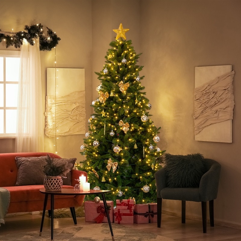 7.5 FT Artificial Christmas Tree with 400 Warm White LED Lights and Gold Ornaments