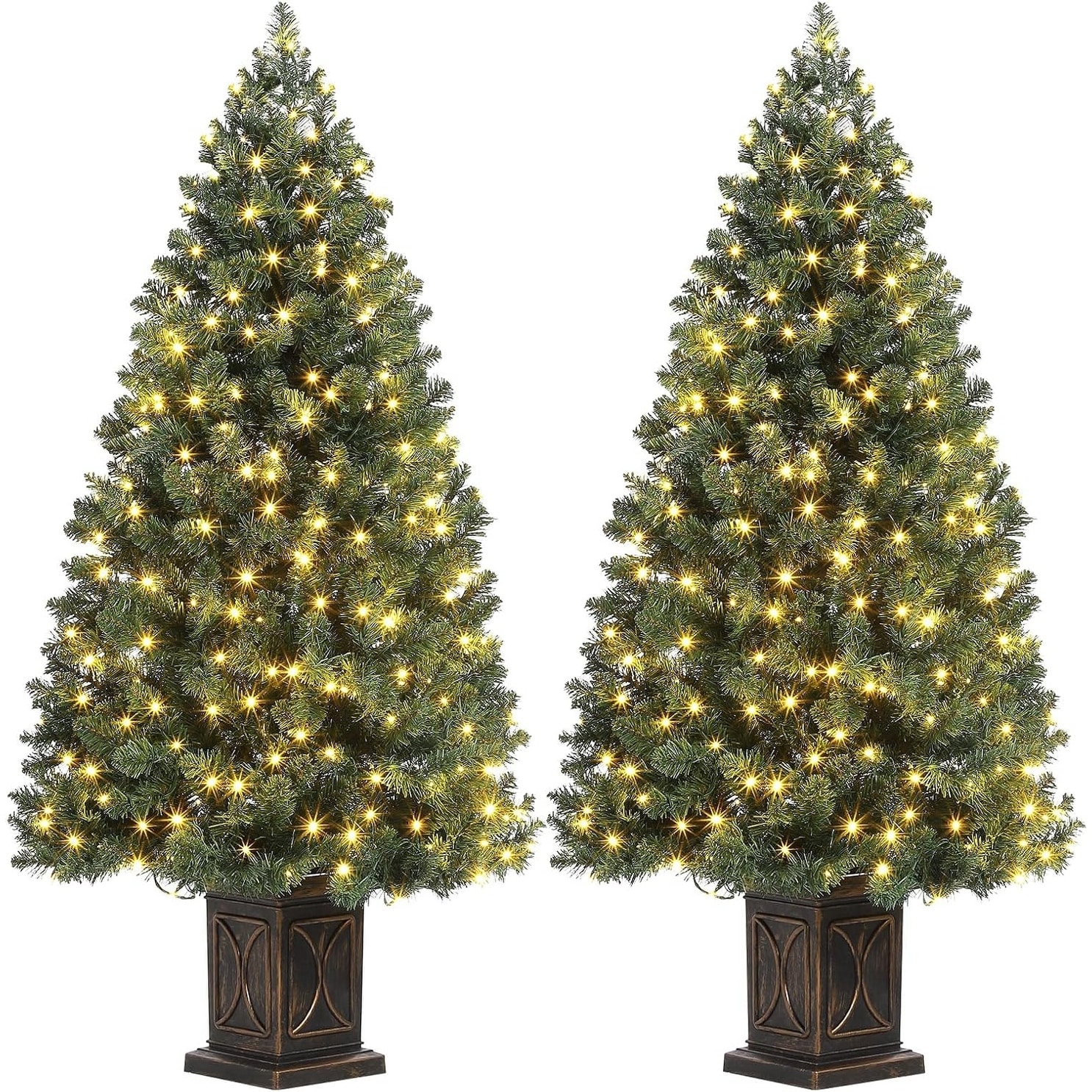 2pcs 4.5 Ft Artificial Fiber Optic Christmas Tree, with 300 Led Lights, 8 Lighting Modes - Green