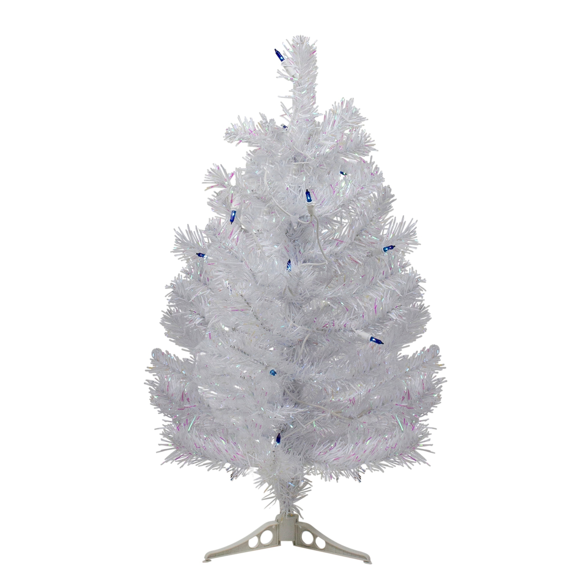 2' Pre-Lit White Pine Artificial Christmas Tree - Blue Lights - 2 Foot