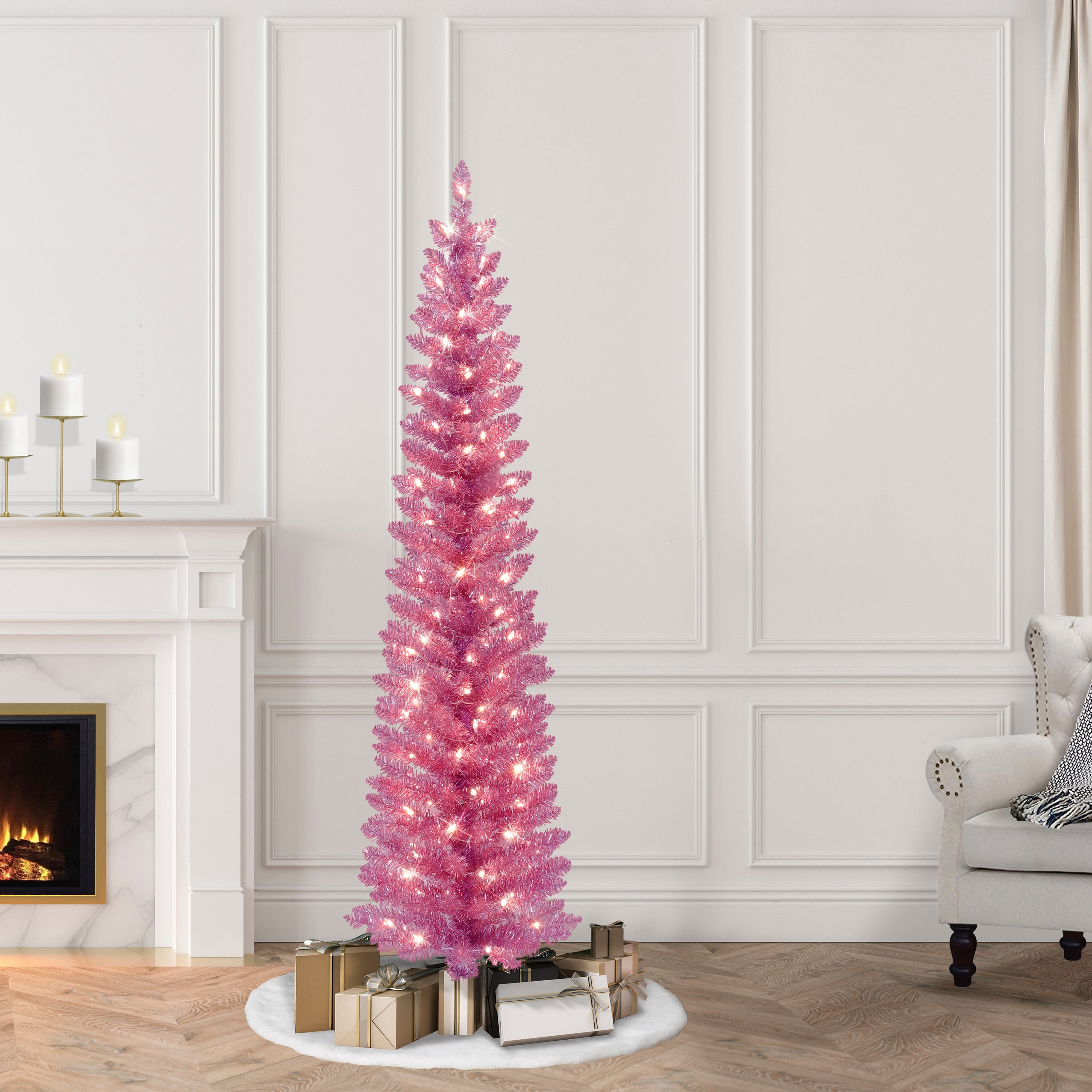Puleo International 6 ft. Pre-Lit Pink Tinsel Artificial Tree