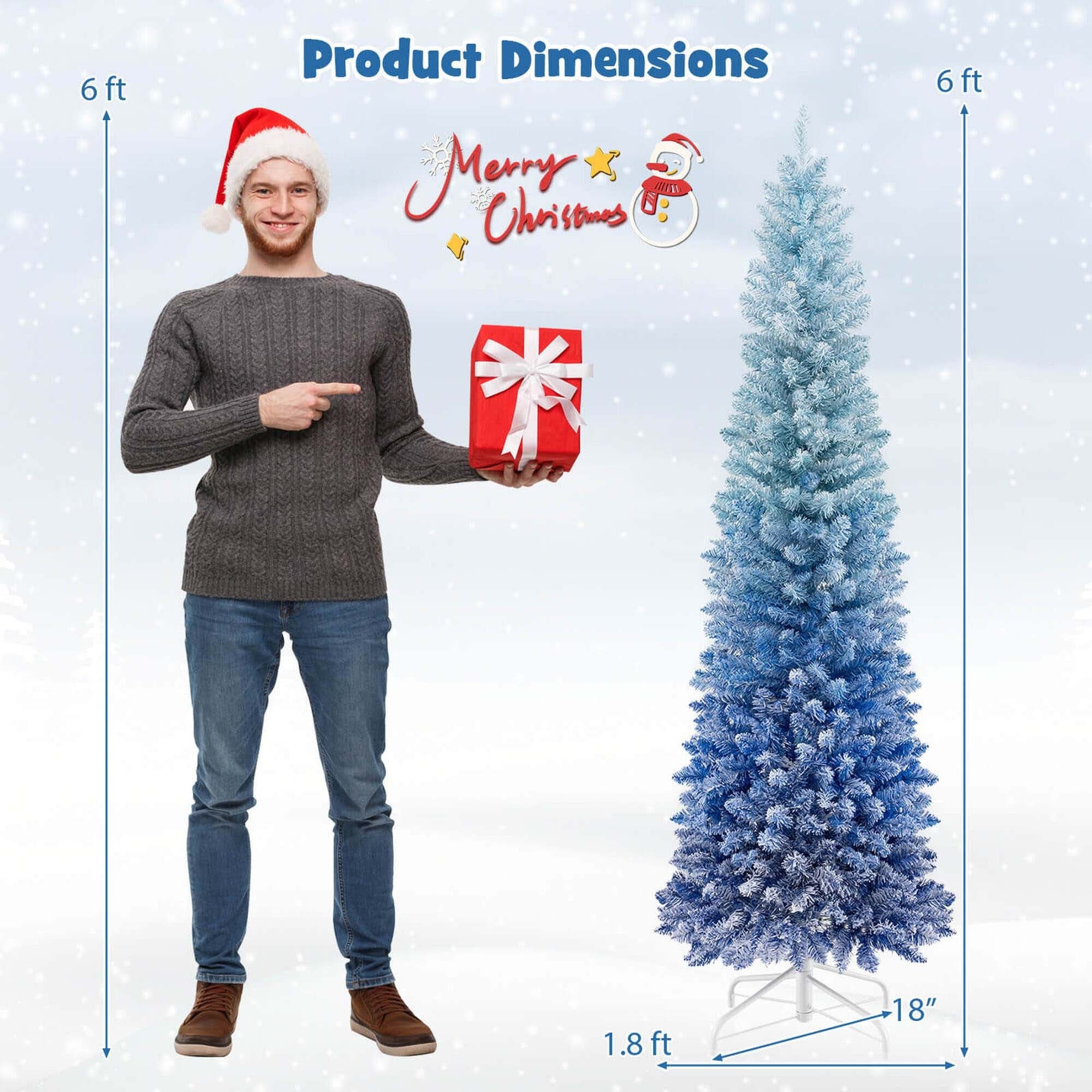 Glitzhome 4.5/6/7.5ft Pre-Lit Pencil Slim Artificial Christmas Tree with Snow Flocked Branches, Multicolored Lights and Base