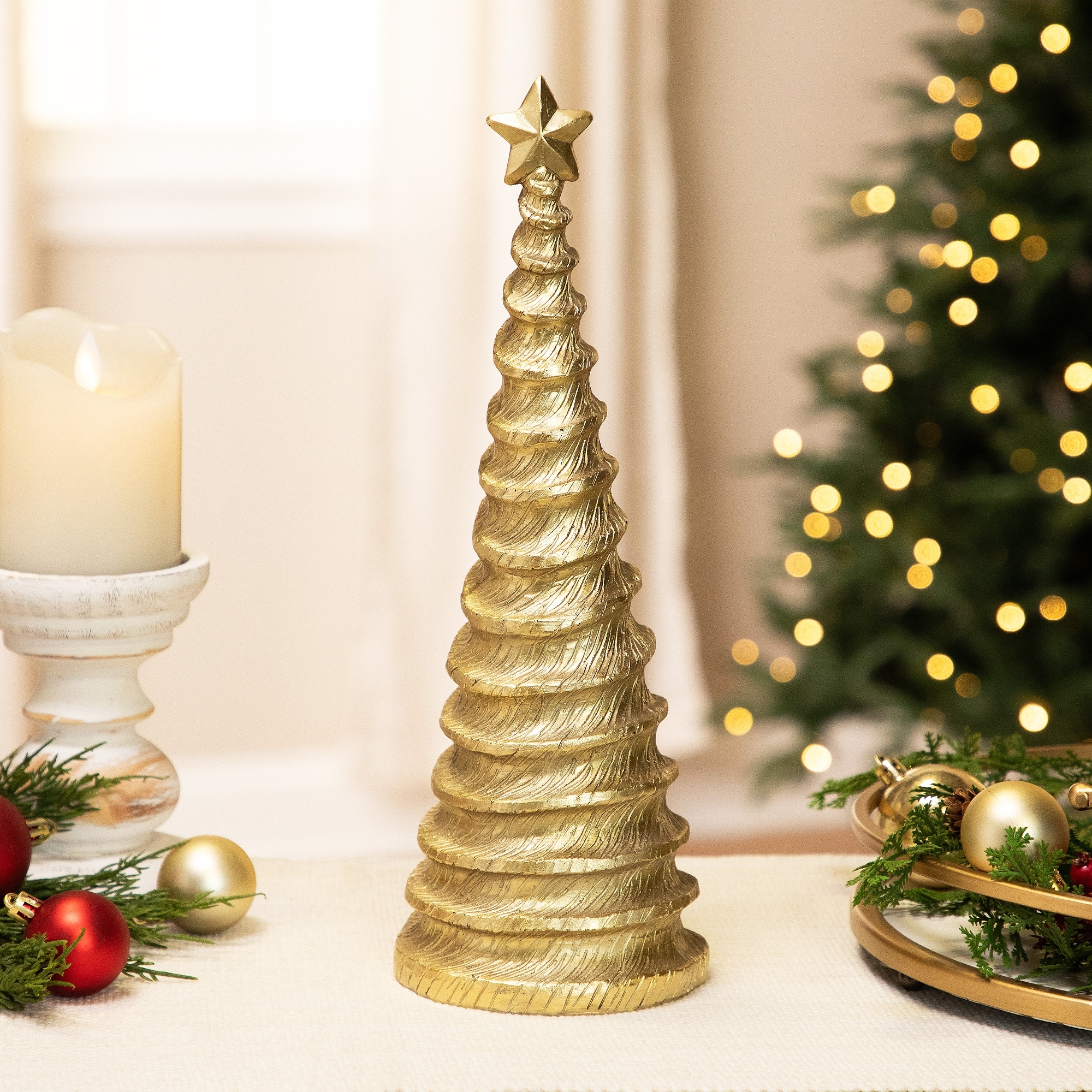 Metallic Swirling Spirals Tabletop Tree with Star Christmas Decoration - 13.5" - Gold