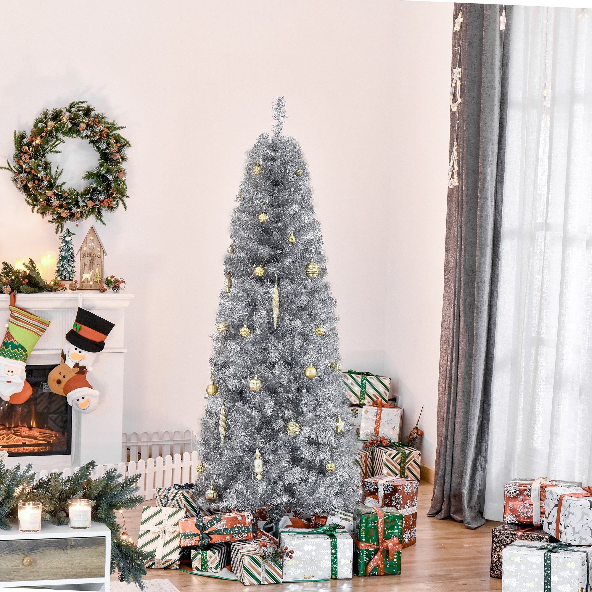 HOMCOM 6' Metallic Silver Christmas Tree with Stand