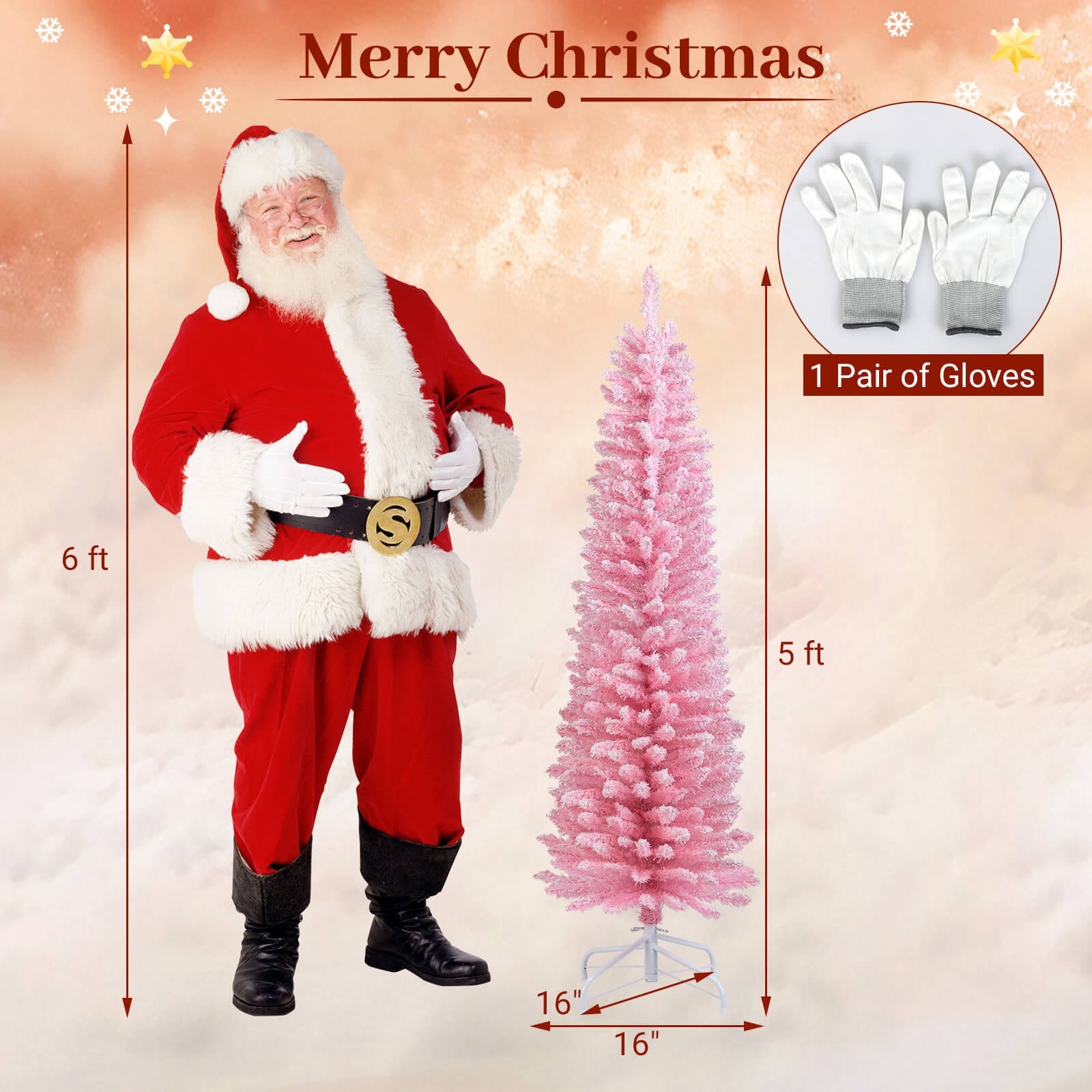 Snow Flocked Pencil Christmas Tree, Slim Artificial Christmas Tree with Sturdy Metal Stand