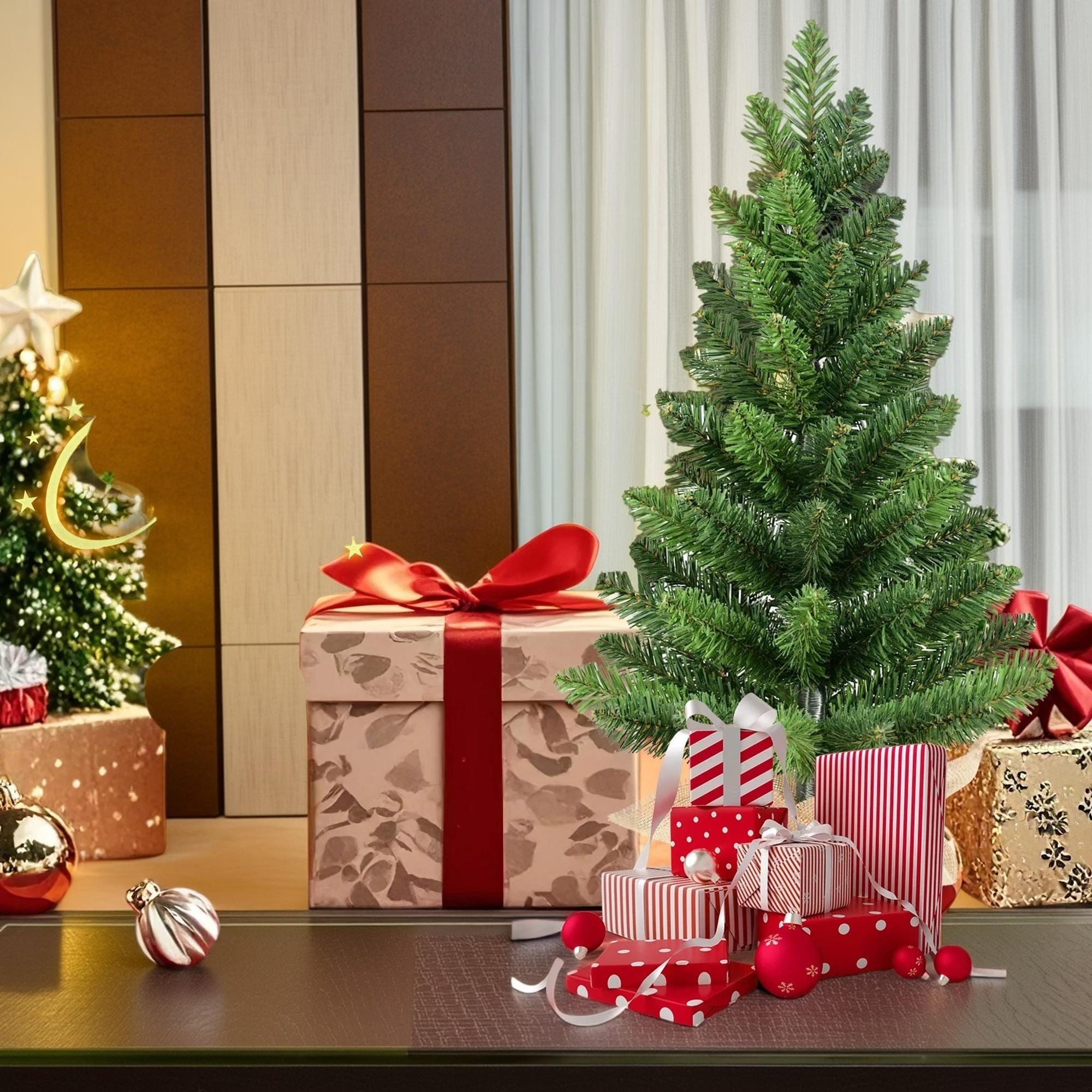 Set of 2 Tabletop Artificial Christmas Trees with Burlap Bases - 2FT Mini Green Holiday Décor - 2 Foot
