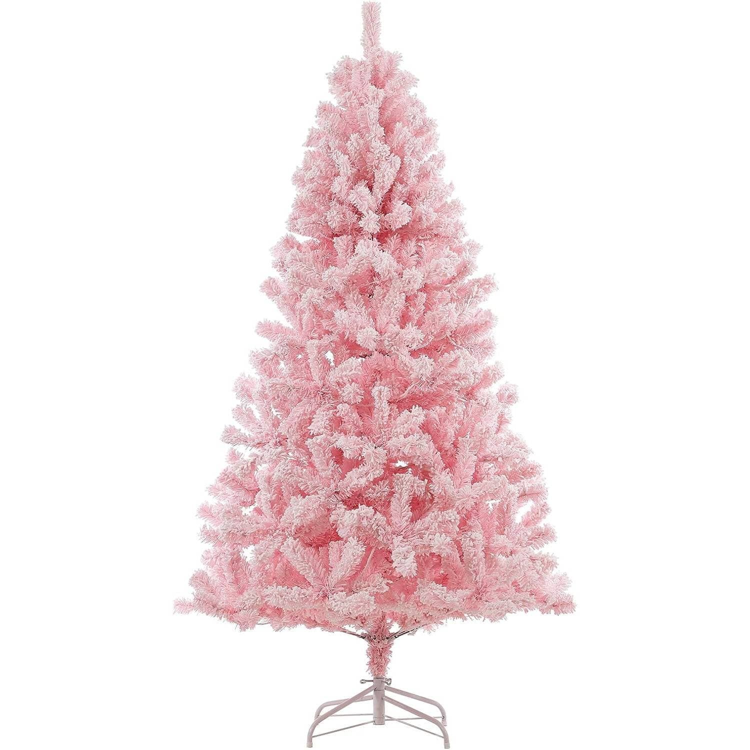 Small Indoor White-Pink Christmas Tree with Flame Retardant Branches and Sturdy Stand - Multi