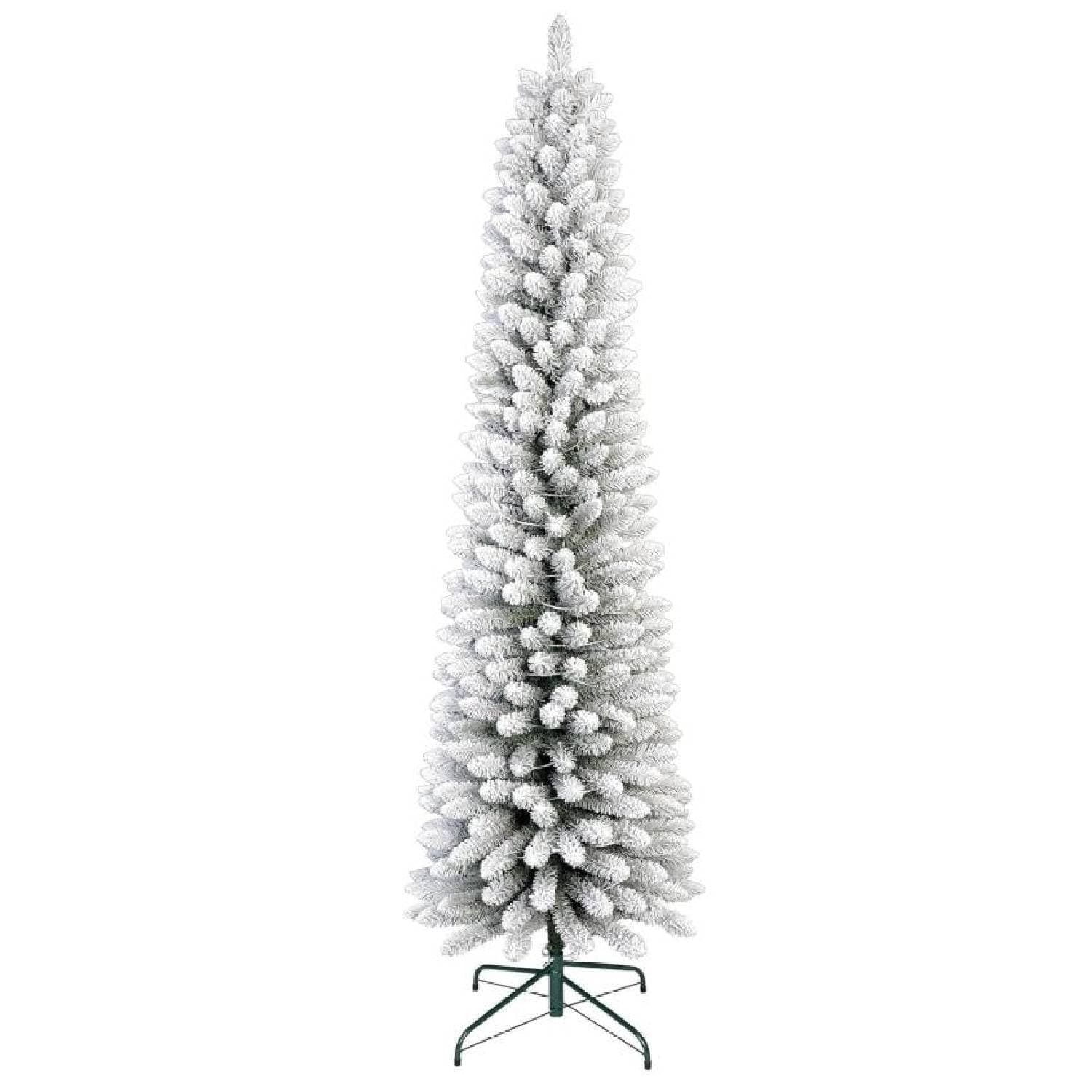 4-6FT Snow Pencil Tree Set, Space Saving Flocked Slim Decor Bundle