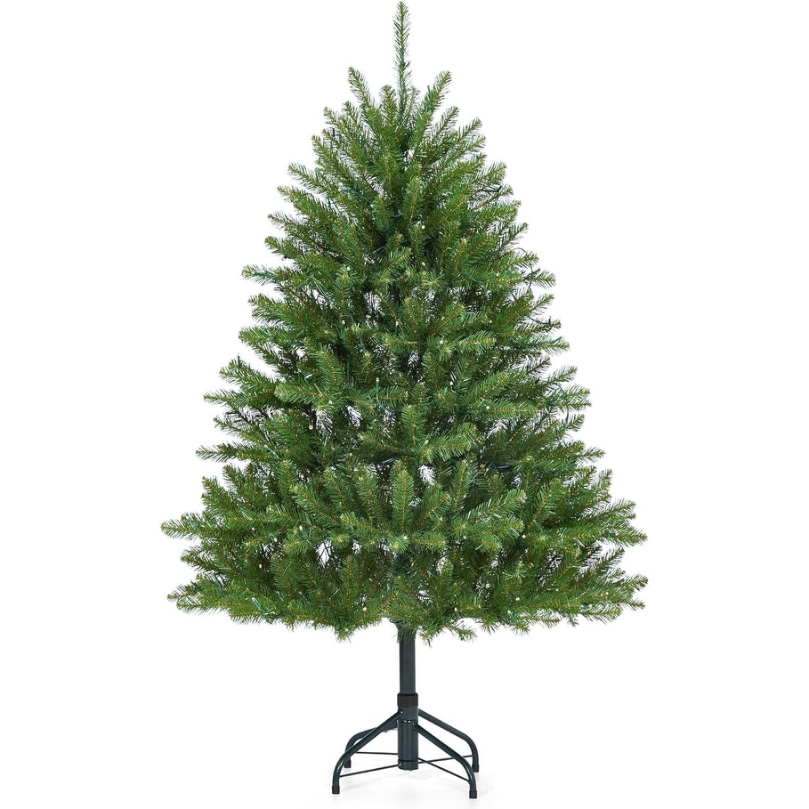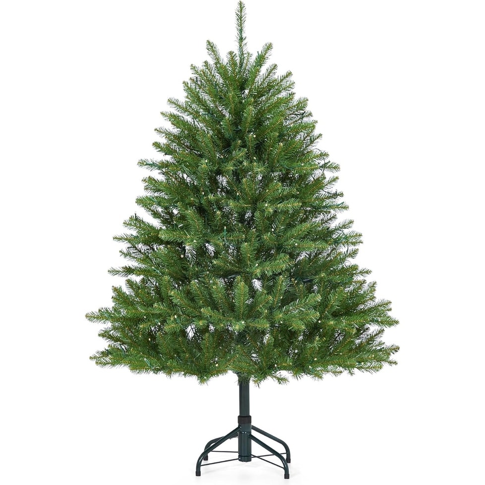 4.5FT Prelit Artificial Christmas Tree with Color Lights, Green PE PVC Tree with Stand, Easy Assembly Holiday Decor