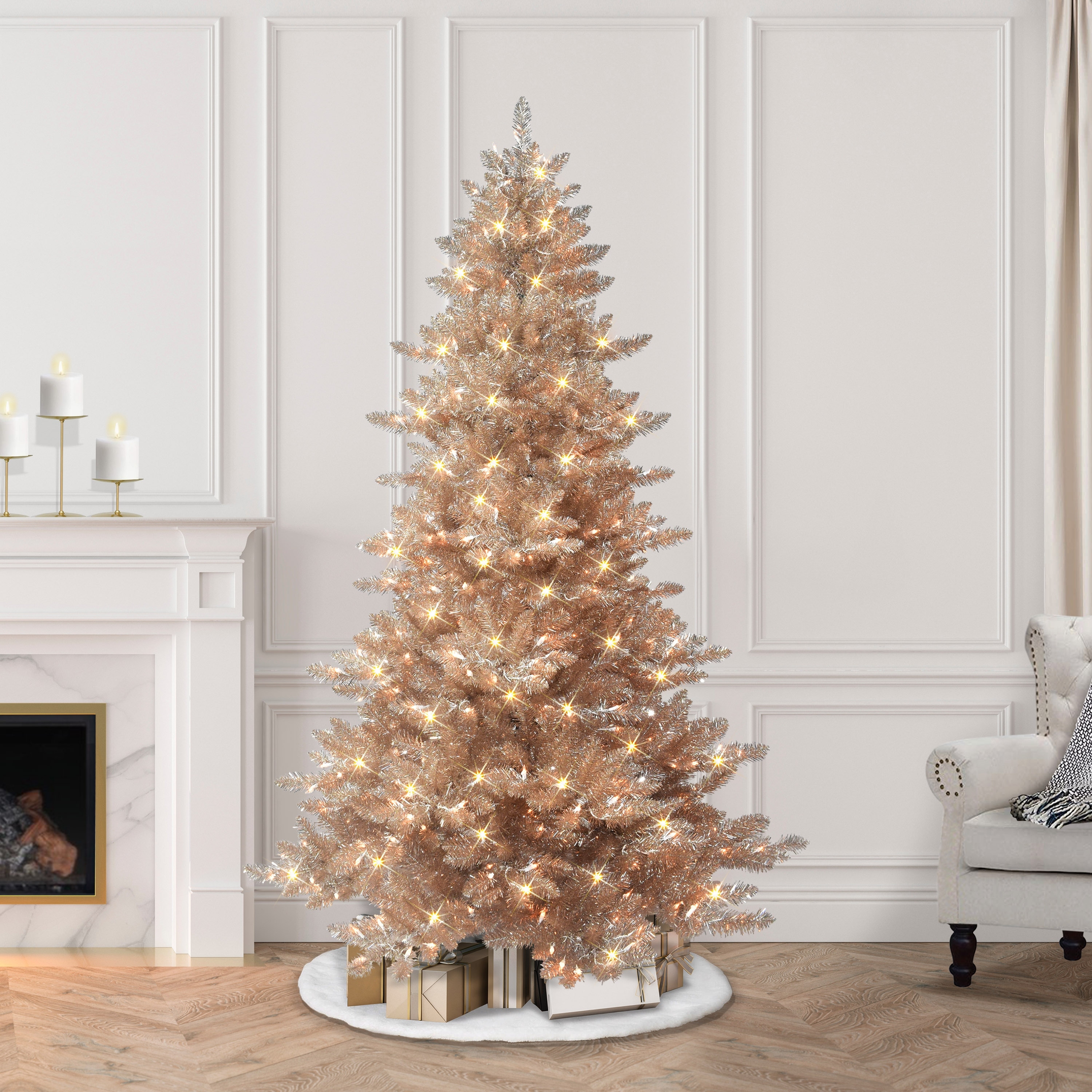 Puleo International 6.5 ft. Pre-lit Rose Gold Royal Majestic Spruce Artificial Christmas Tree