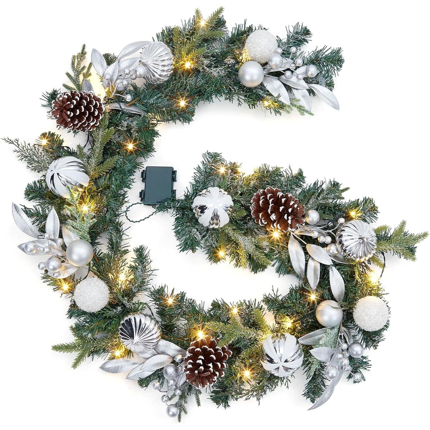 Glitzhome Snow Flocked Christmas Wreath or Garland with LED and Timer