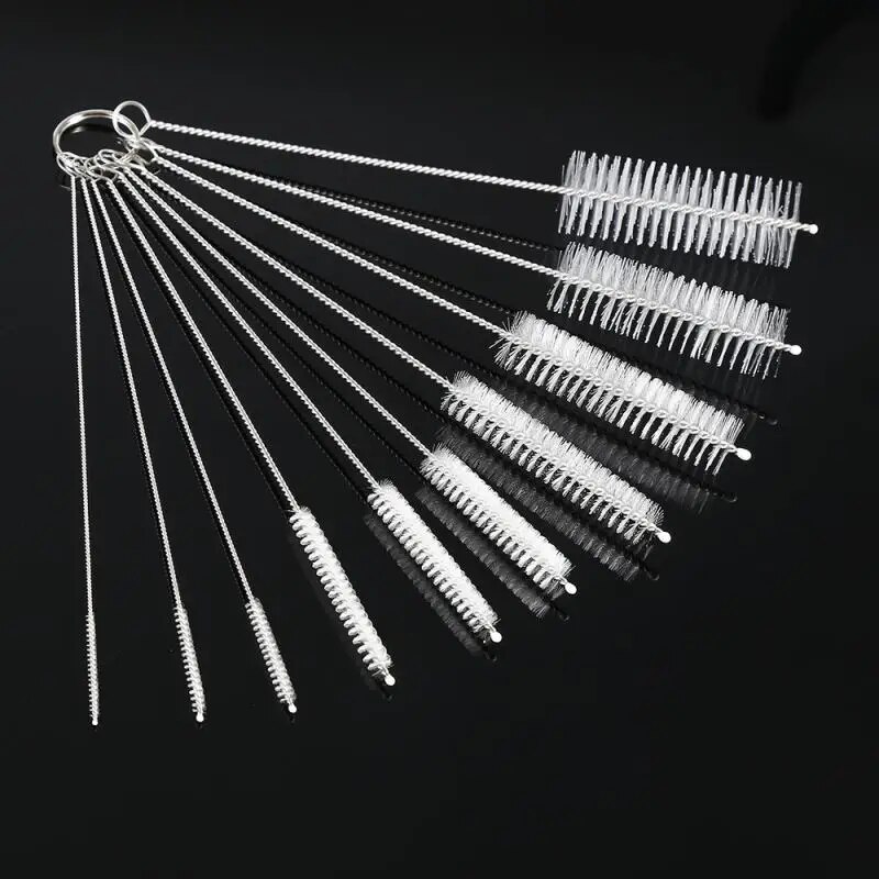 10 Piece Nylon Cleaning Brush Set For Test Tubes, Bottles, Straws, Household Cleaning Bristle Kit & Accessories white