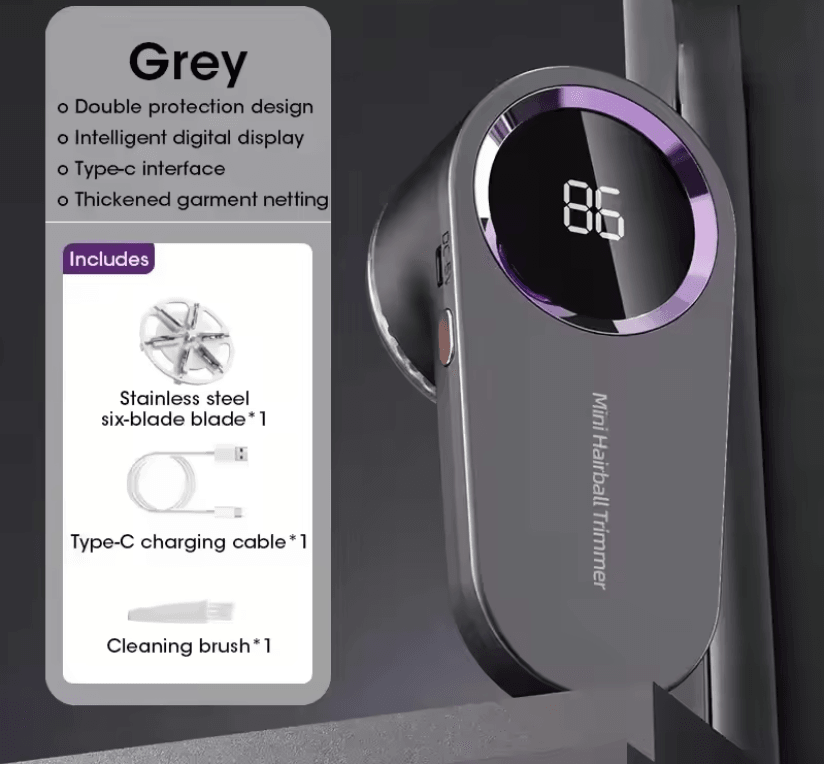 Rechargeable Fabric Shaver And Lint Remover With LED Display For Clothes And Furniture gray