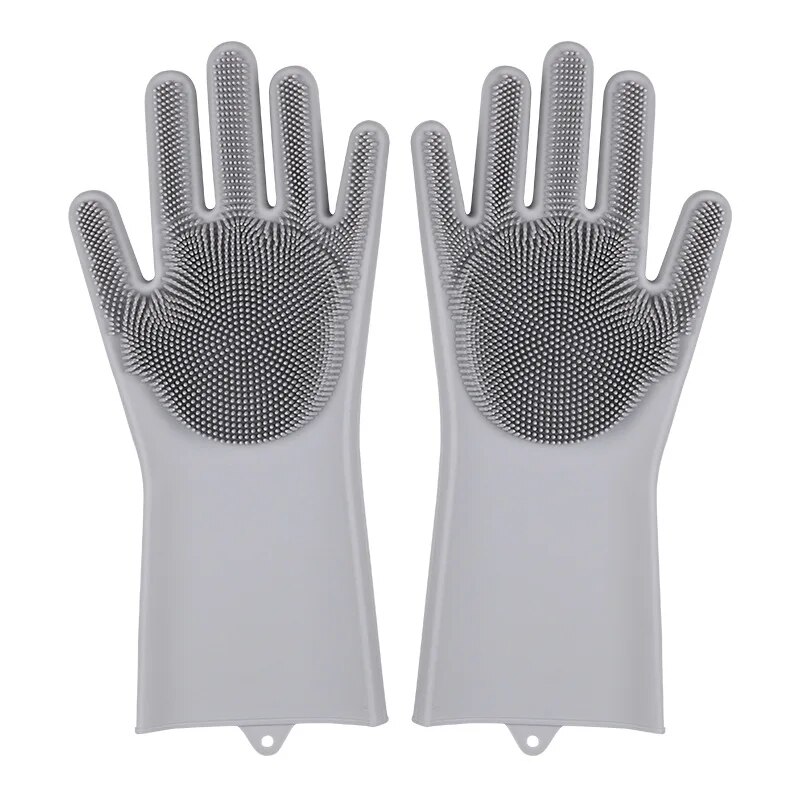 Magic Silicone Rubber Dishwashing Gloves: Household Sponge Scrubber For Kitchen Cleaning GRAY
