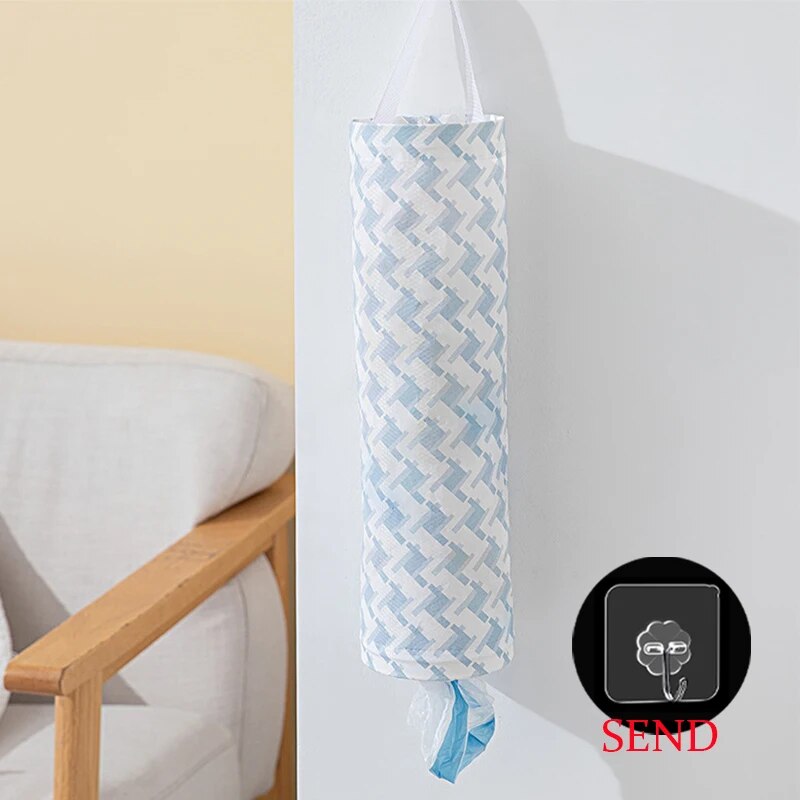 Wall Mounted Trash Bag Dispenser For Kitchen Organization | Garbage Storage And Organization Solution With Hanging Hooks B